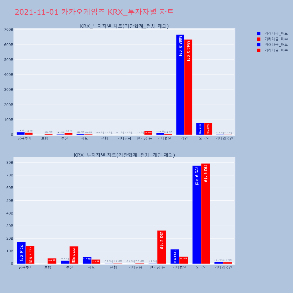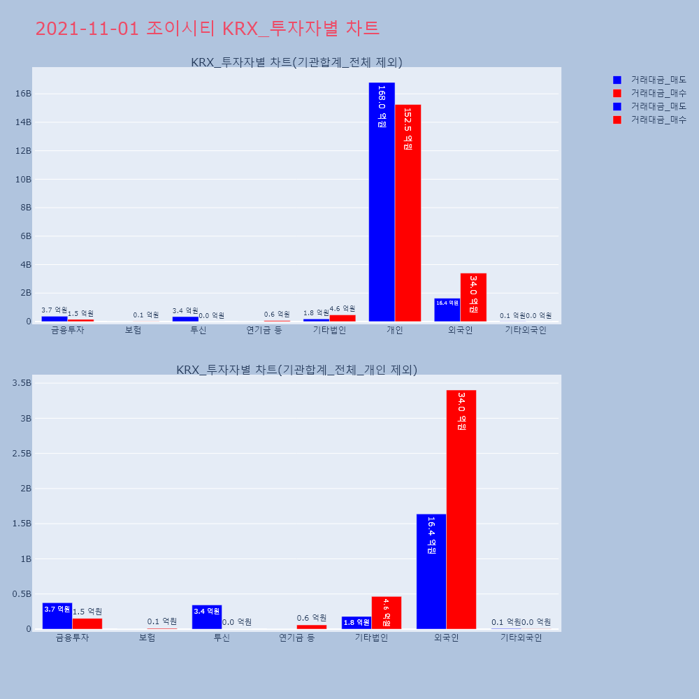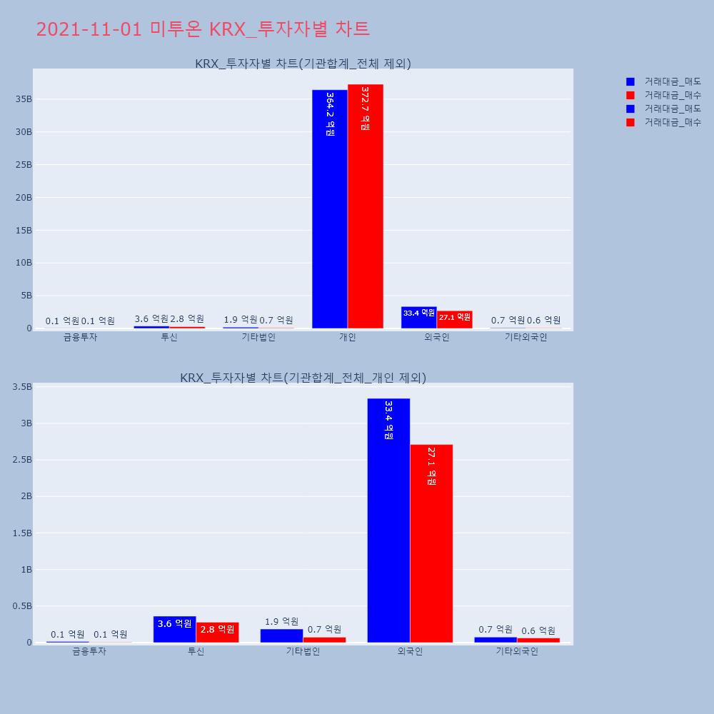 | 투자기관 | 거래량_매도 | 거래량_매수 | 거래량_순매수 | 거래대금_매도 | 거래대금_매수 | 거래대금_순매수 |
