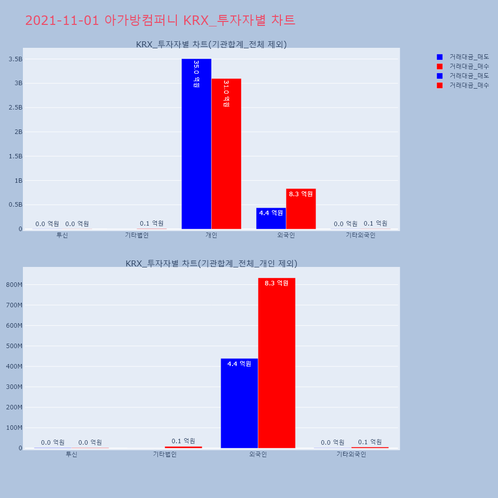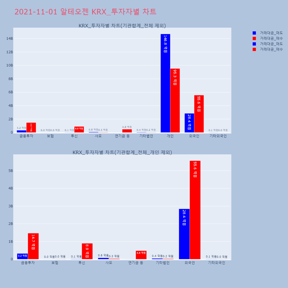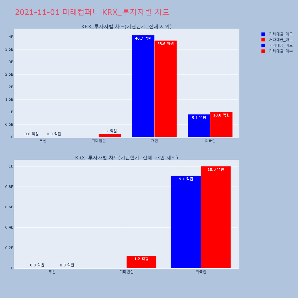 | 투자기관 | 거래량_매도 | 거래량_매수 | 거래량_순매수 | 거래대금_매도 | 거래대금_매수 | 거래대금_순매수 |