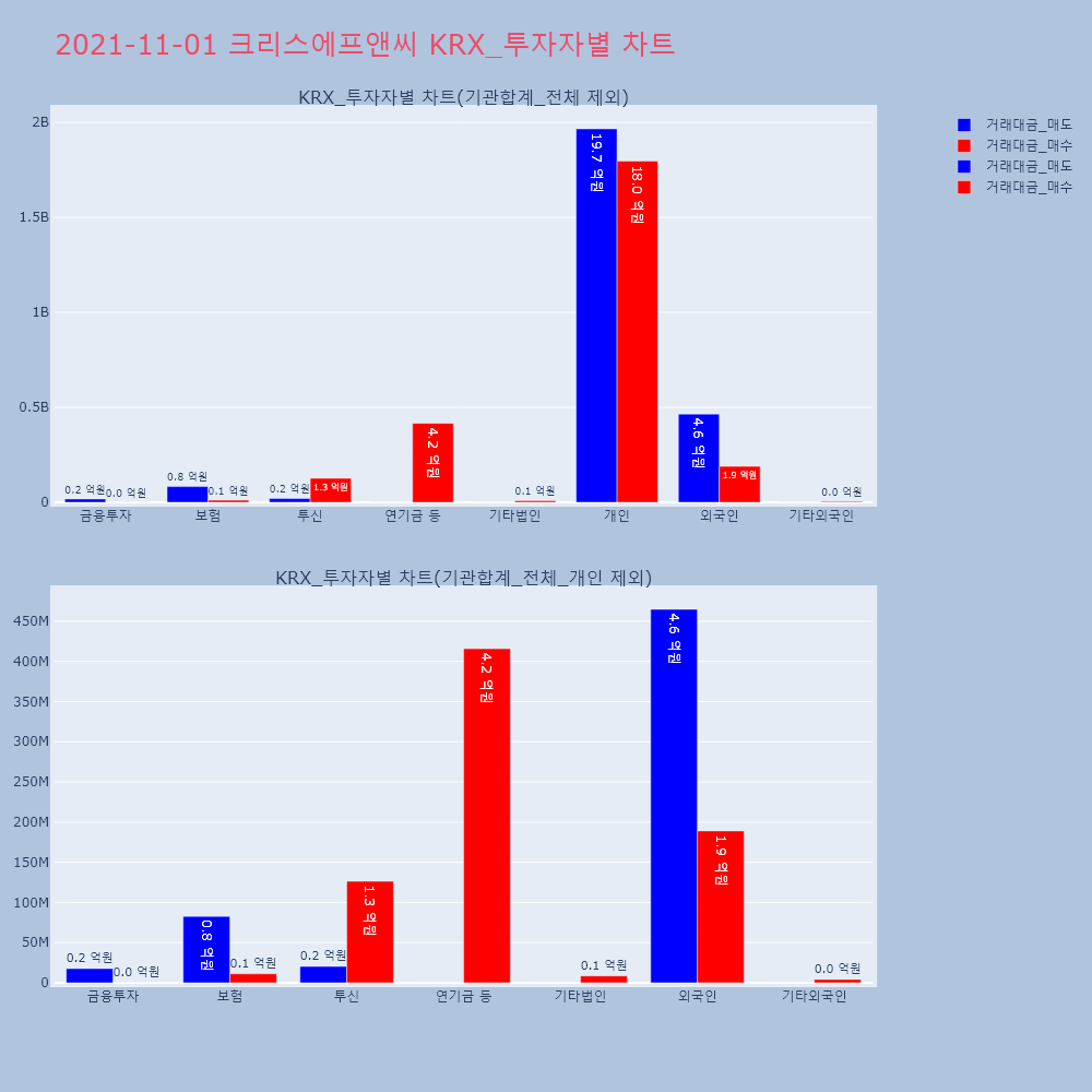 | 투자기관 | 거래량_매도 | 거래량_매수 | 거래량_순매수 | 거래대금_매도 | 거래대금_매수 | 거래대금_순매수 |