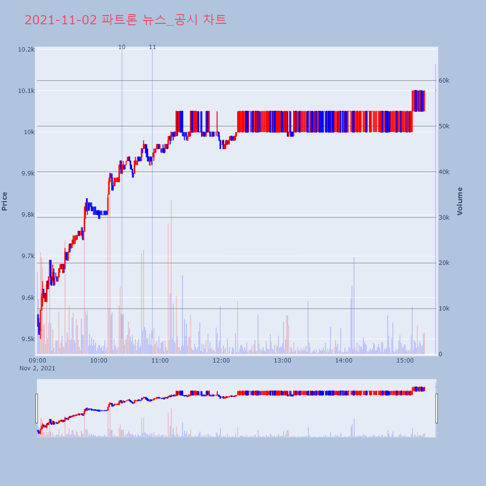 | 11 | [강세 토픽] 스마트폰 카메라 테마, 파트론 +6.32%, 나무가 +4.65%[스마트폰 카메라] 테마가 강세다. 전일 대비 2.06 | 조선경제 | 파트론 | 2021-11-02 10:52:29 |
