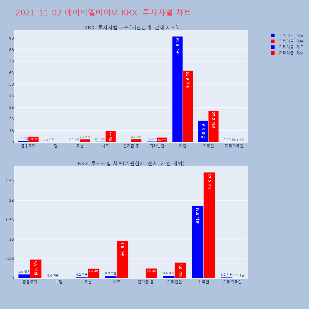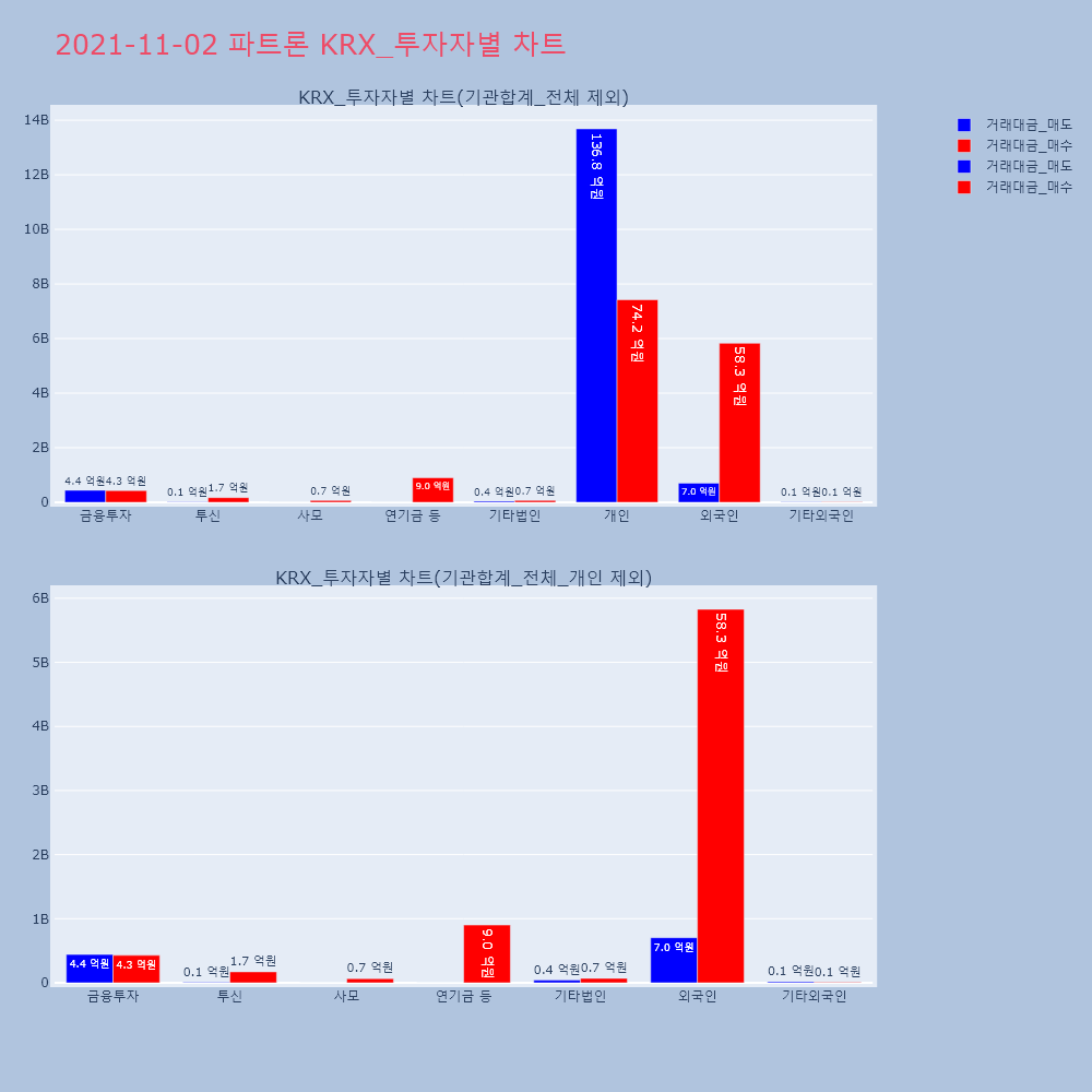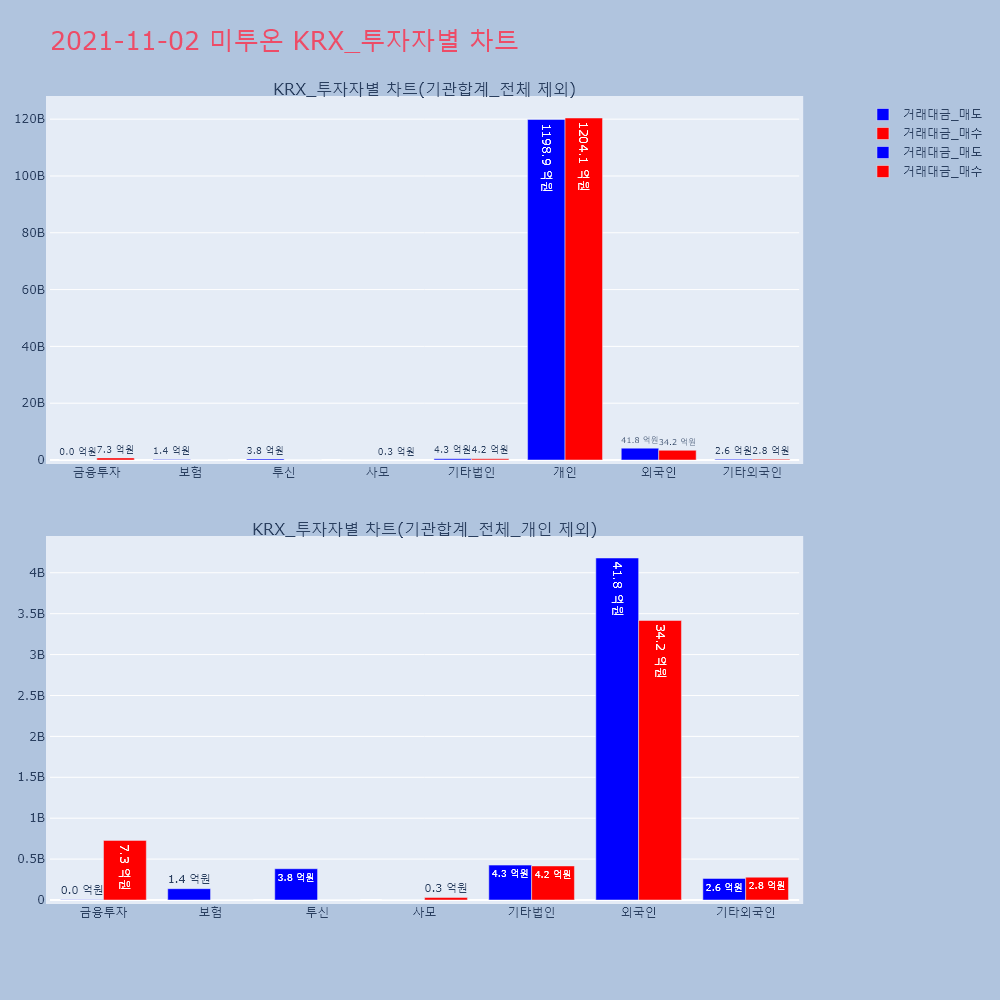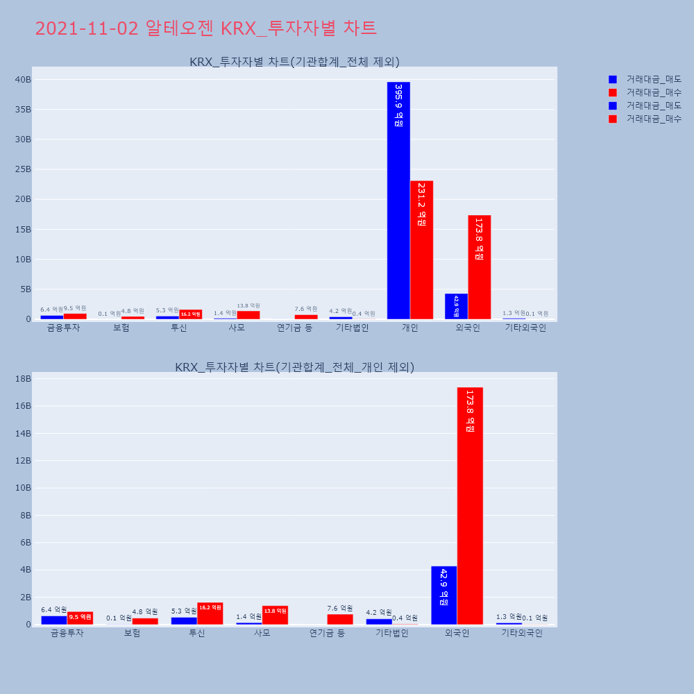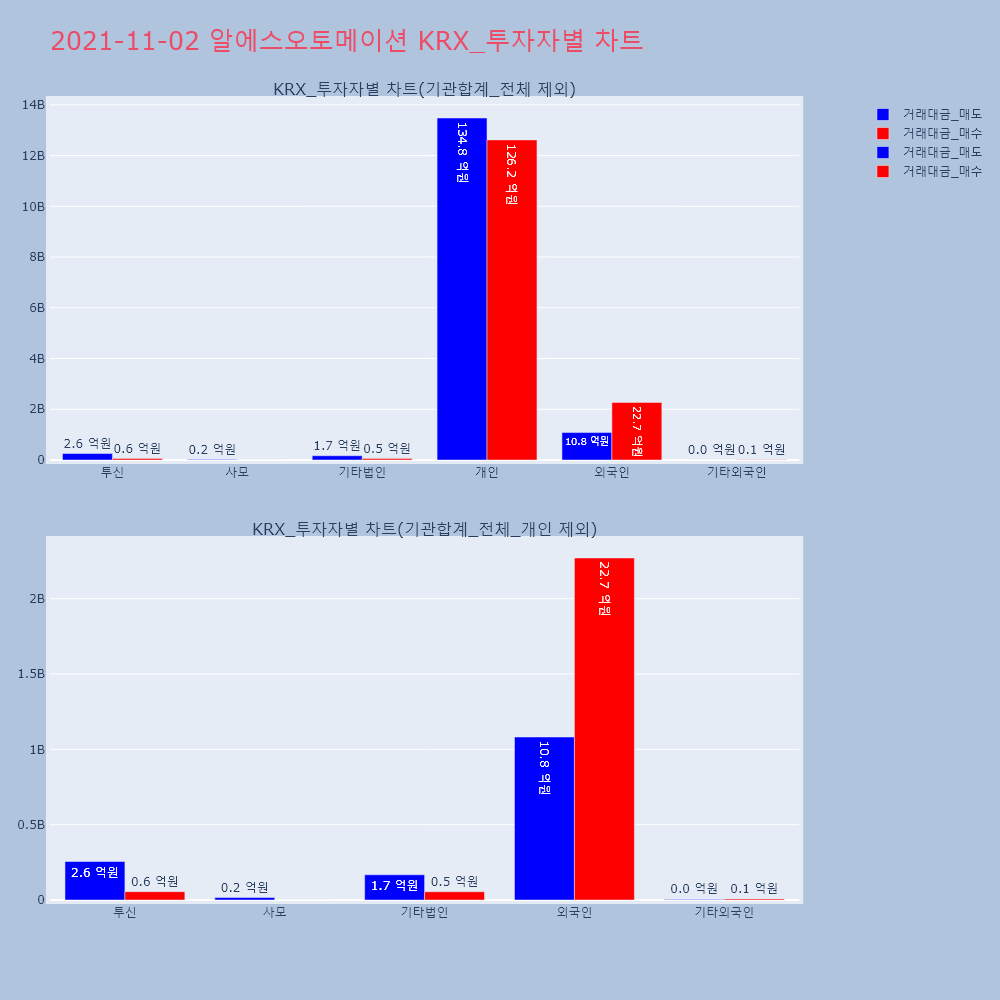 | 투자기관 | 거래량_매도 | 거래량_매수 | 거래량_순매수 | 거래대금_매도 | 거래대금_매수 | 거래대금_순매수 |