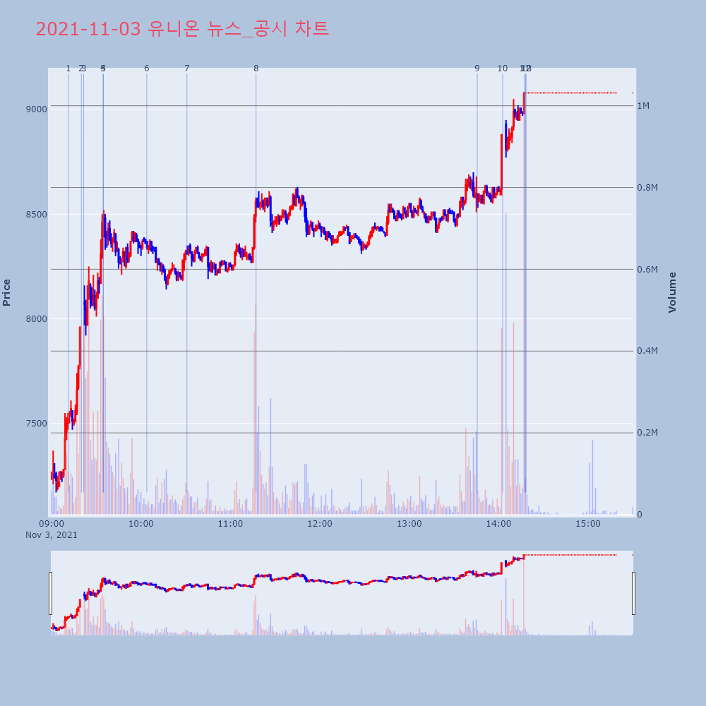 11 | 유니온, +29.90% 상한가유니온(000910)이 상한가를 기록했다. 전일 대비 | 조선경제 | 유니온 | 2021-11-03 14:17:21 |
