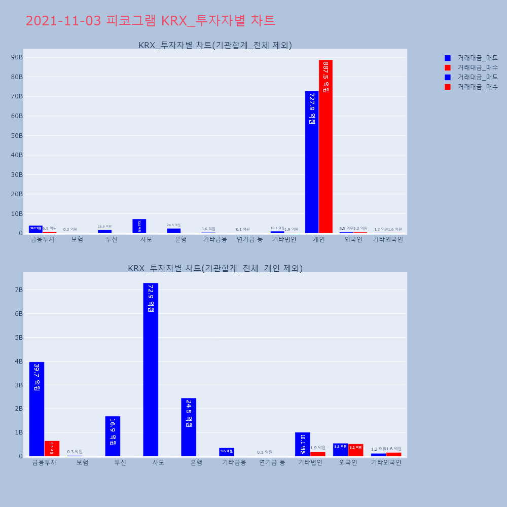 | 투자기관 | 거래량_매도 | 거래량_매수 | 거래량_순매수 | 거래대금_매도 | 거래대금_매수 | 거래대금_순매수 |