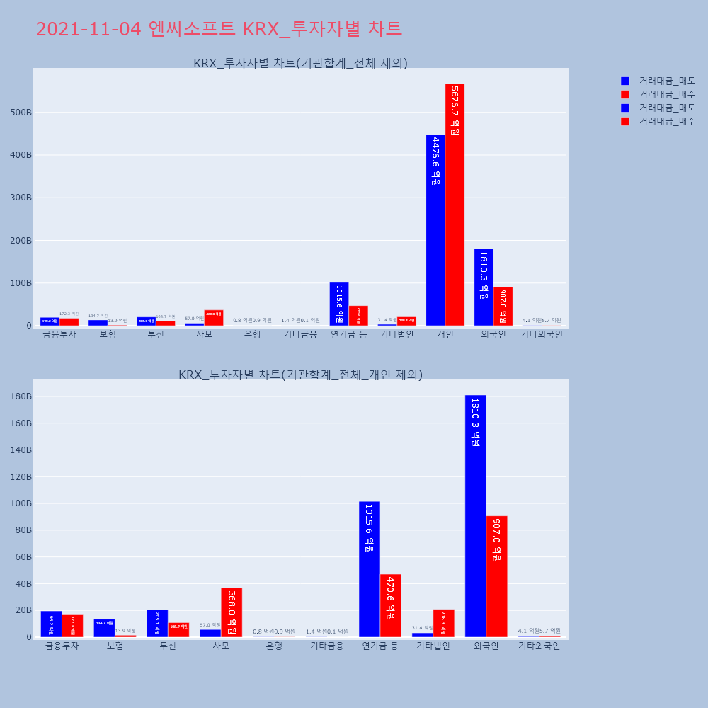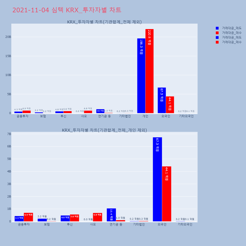 | 투자기관 | 거래량_매도 | 거래량_매수 | 거래량_순매수 | 거래대금_매도 | 거래대금_매수 | 거래대금_순매수 |