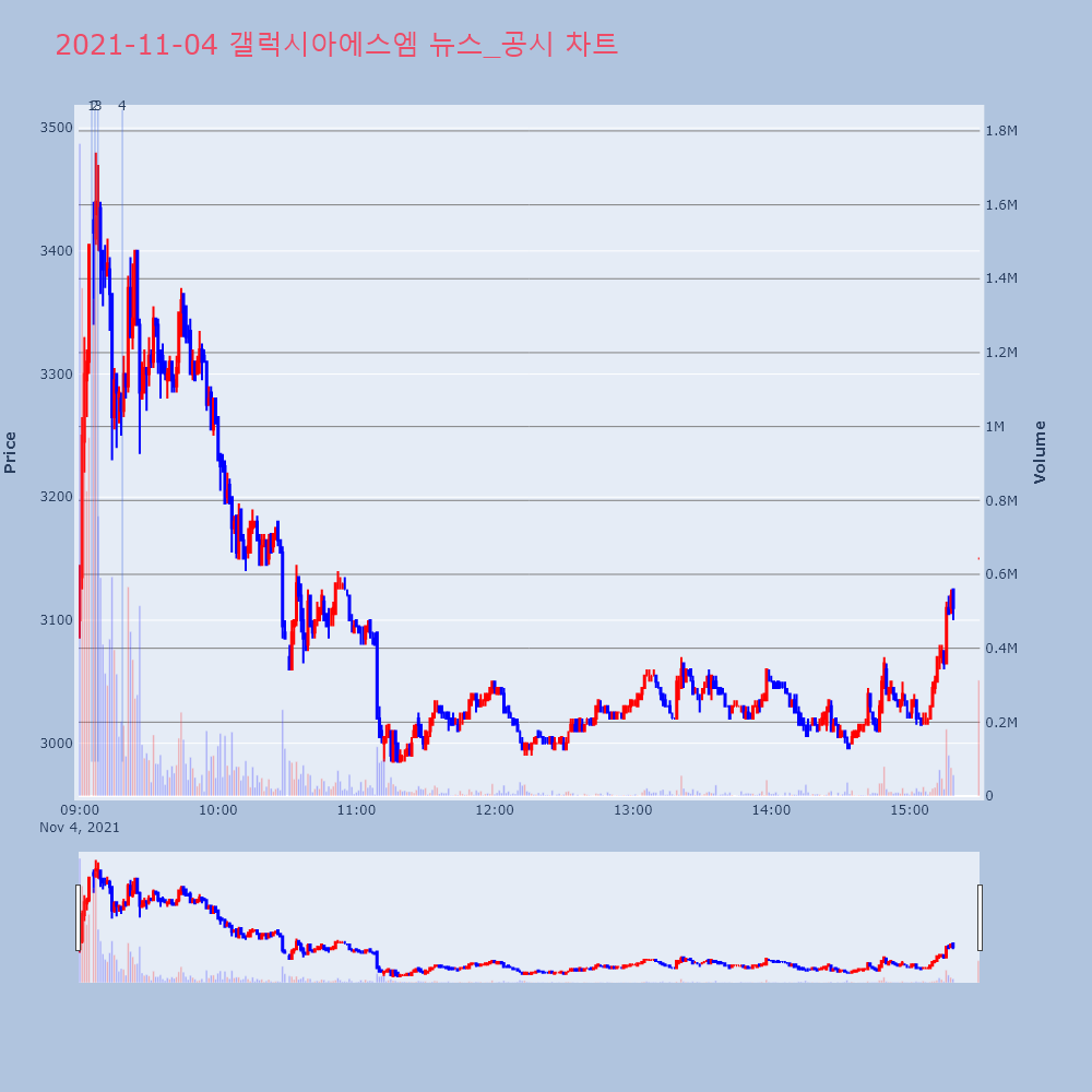 | 3 | 갤럭시아에스엠, +16.84% 52주 신고가갤럭시아에스엠(011420)이 52주 신고가를 경신했다 | 조선경제 | 갤럭시아에스엠 | 2021-11-04 09:07:56 |