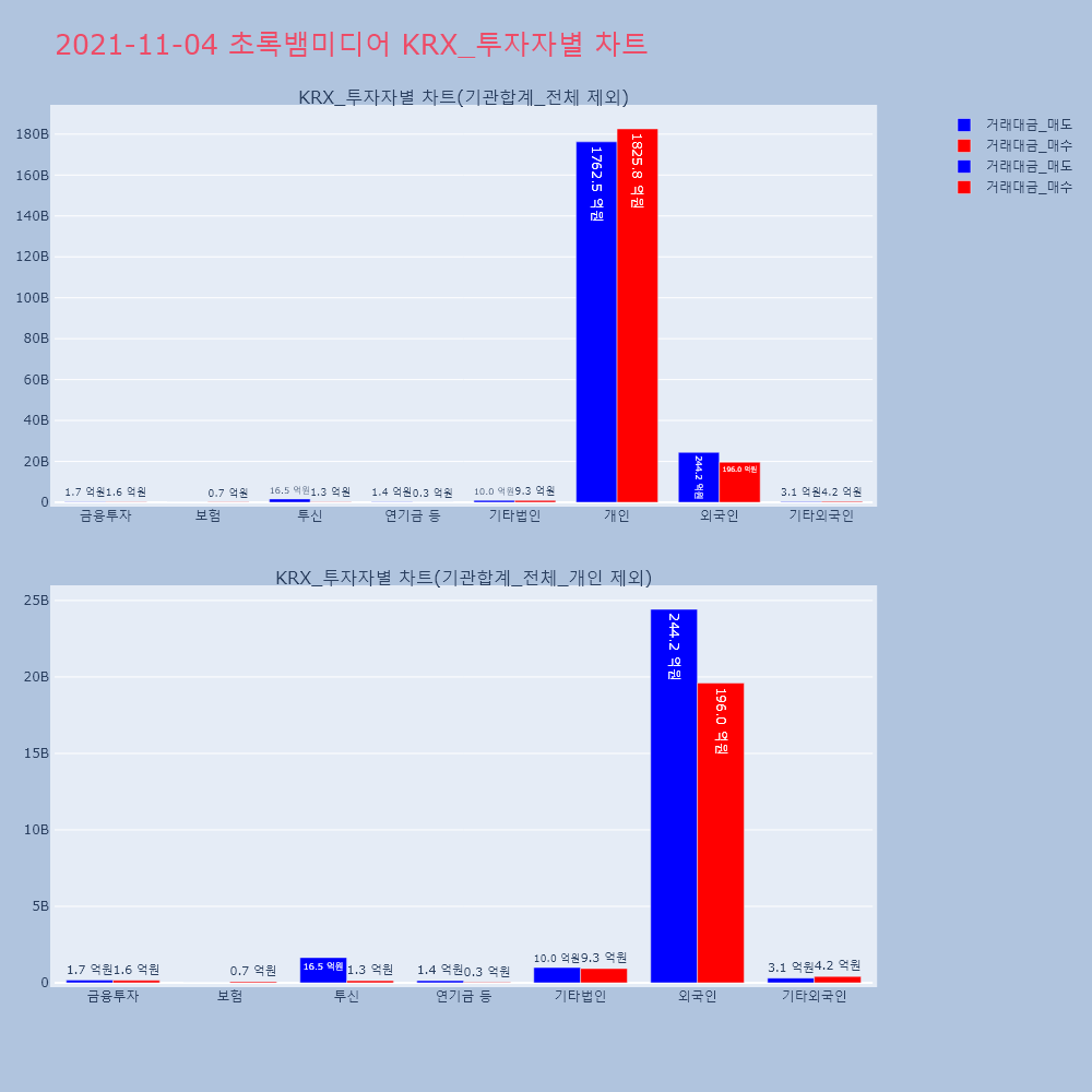 | 투자기관 | 거래량_매도 | 거래량_매수 | 거래량_순매수 | 거래대금_매도 | 거래대금_매수 | 거래대금_순매수 |