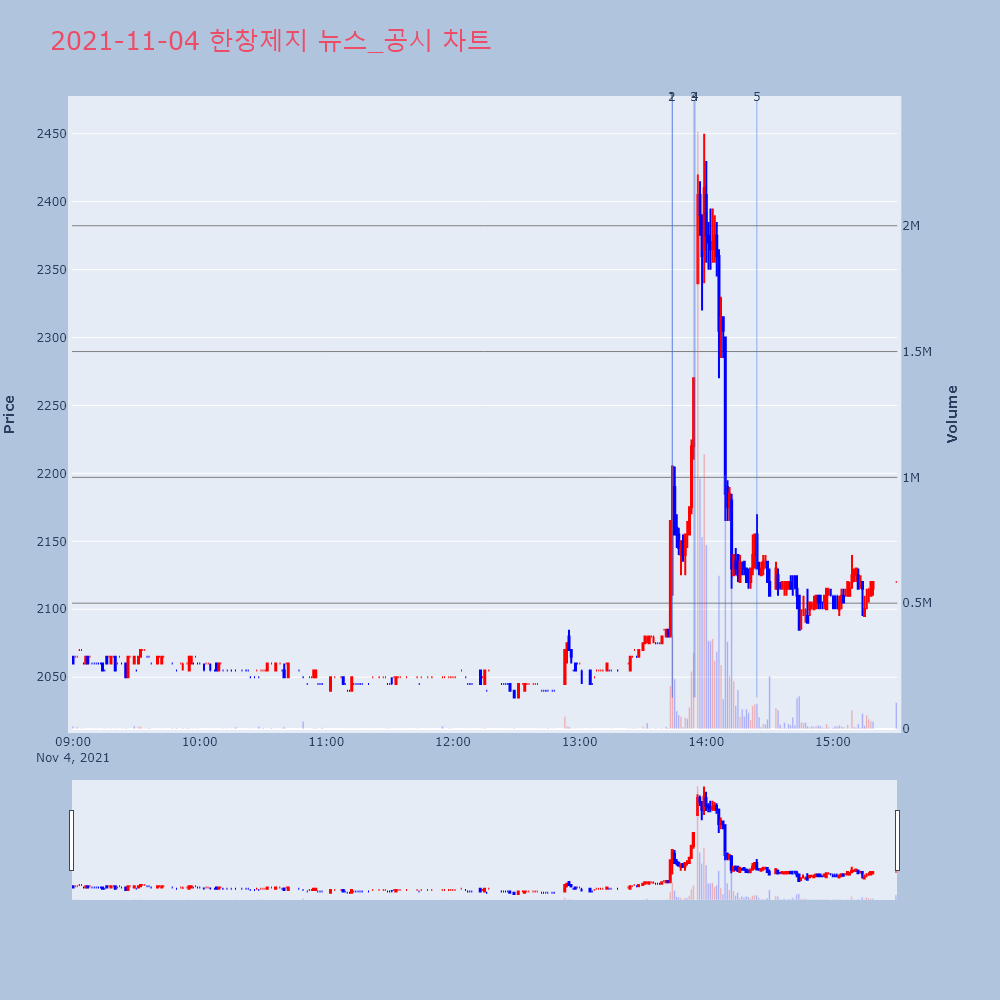 | 3 | 한창제지, +10.46% VI 발동한창제지(009460)가 VI가 발동했다. 전일 대비 | 조선경제 | 한창제지 | 2021-11-04 13:54:11 |