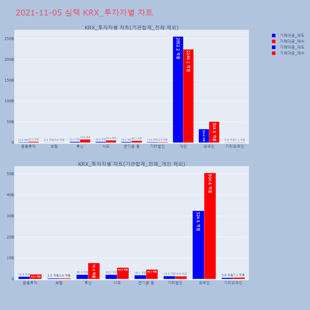 | 투자기관 | 거래량_매도 | 거래량_매수 | 거래량_순매수 | 거래대금_매도 | 거래대금_매수 | 거래대금_순매수 |