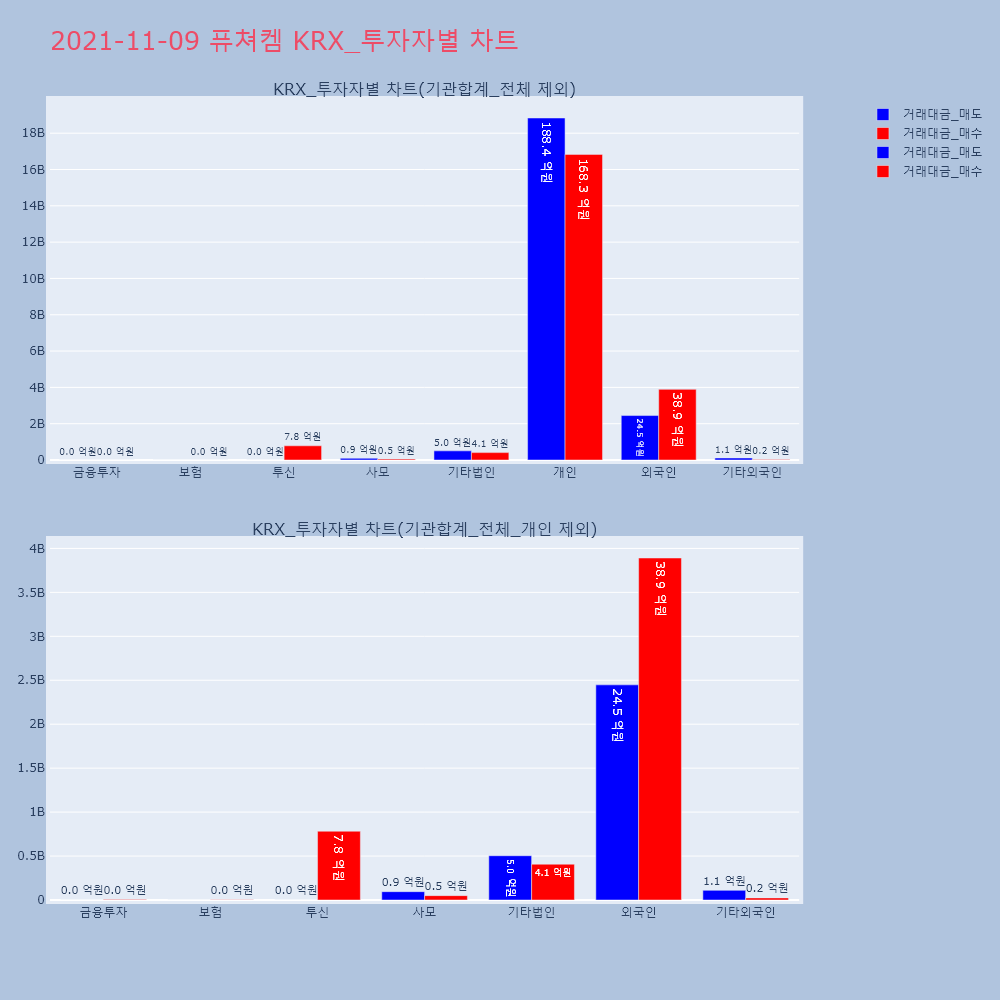 | 투자기관 | 거래량_매도 | 거래량_매수 | 거래량_순매수 | 거래대금_매도 | 거래대금_매수 | 거래대금_순매수 |