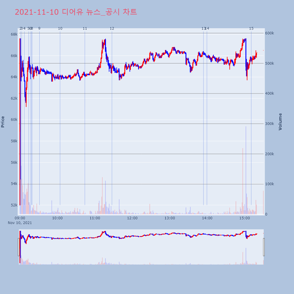 | 15 | [장초반 인기 검색 종목 PICK5] - 디어유, 버킷스튜디오, 룽투코리아... 최적의 매매타이밍을 실시간으로 전송하여 투자자들에게 도 | 파이낸셜 | 룽투코리아 | 2021-11-10 10:04:17 |