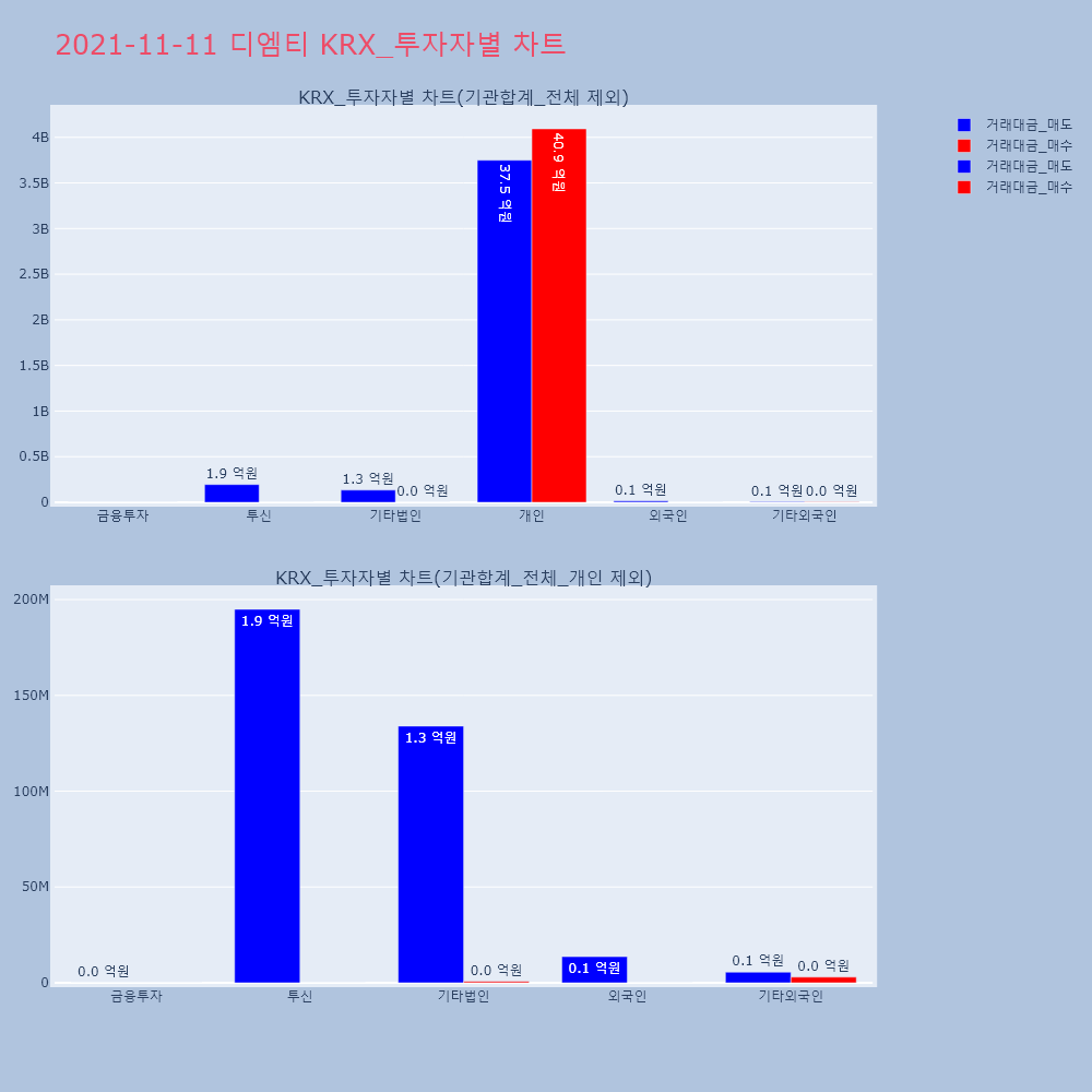 | 투자기관 | 거래량_매도 | 거래량_매수 | 거래량_순매수 | 거래대금_매도 | 거래대금_매수 | 거래대금_순매수 |