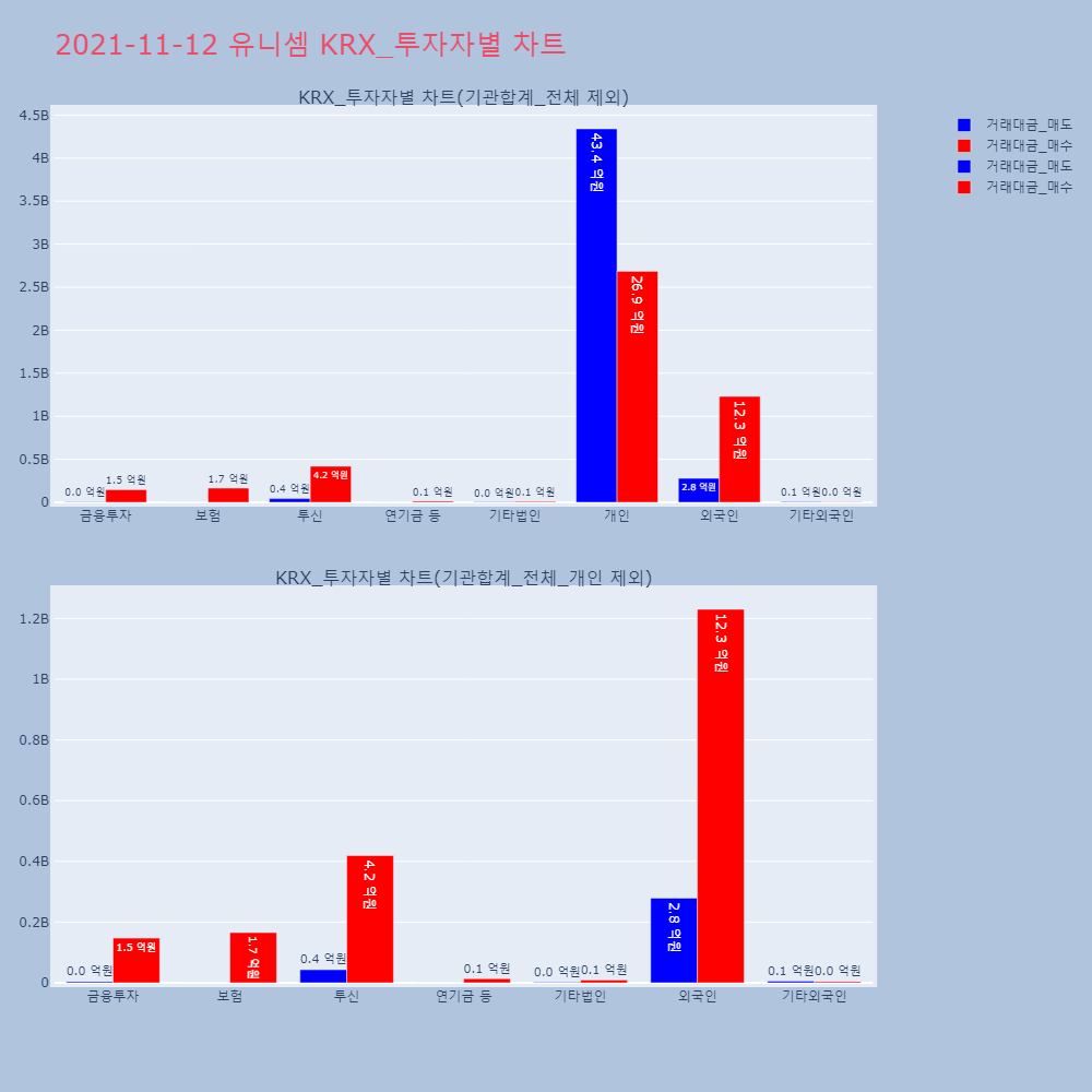 | 투자기관 | 거래량_매도 | 거래량_매수 | 거래량_순매수 | 거래대금_매도 | 거래대금_매수 | 거래대금_순매수 |