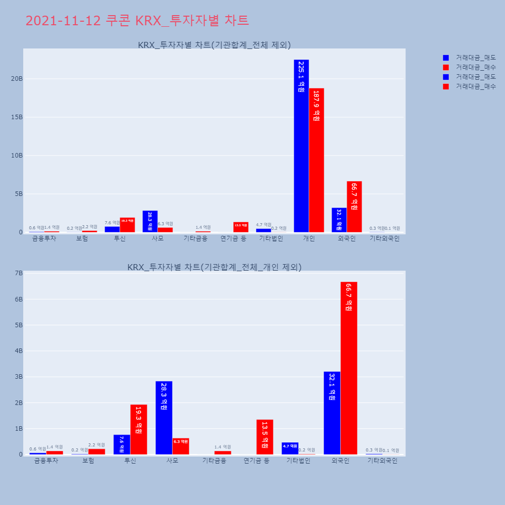 | 투자기관 | 거래량_매도 | 거래량_매수 | 거래량_순매수 | 거래대금_매도 | 거래대금_매수 | 거래대금_순매수 |
