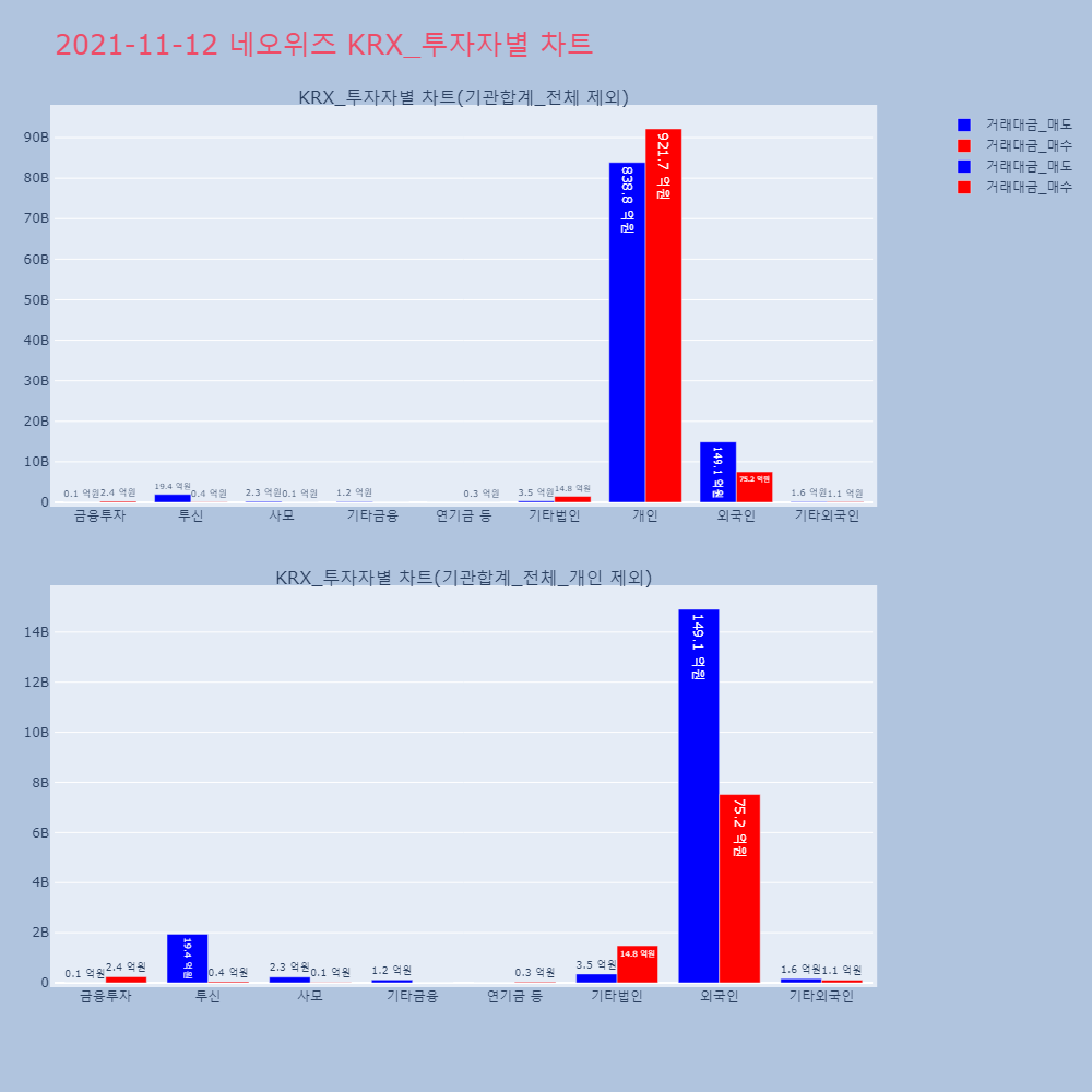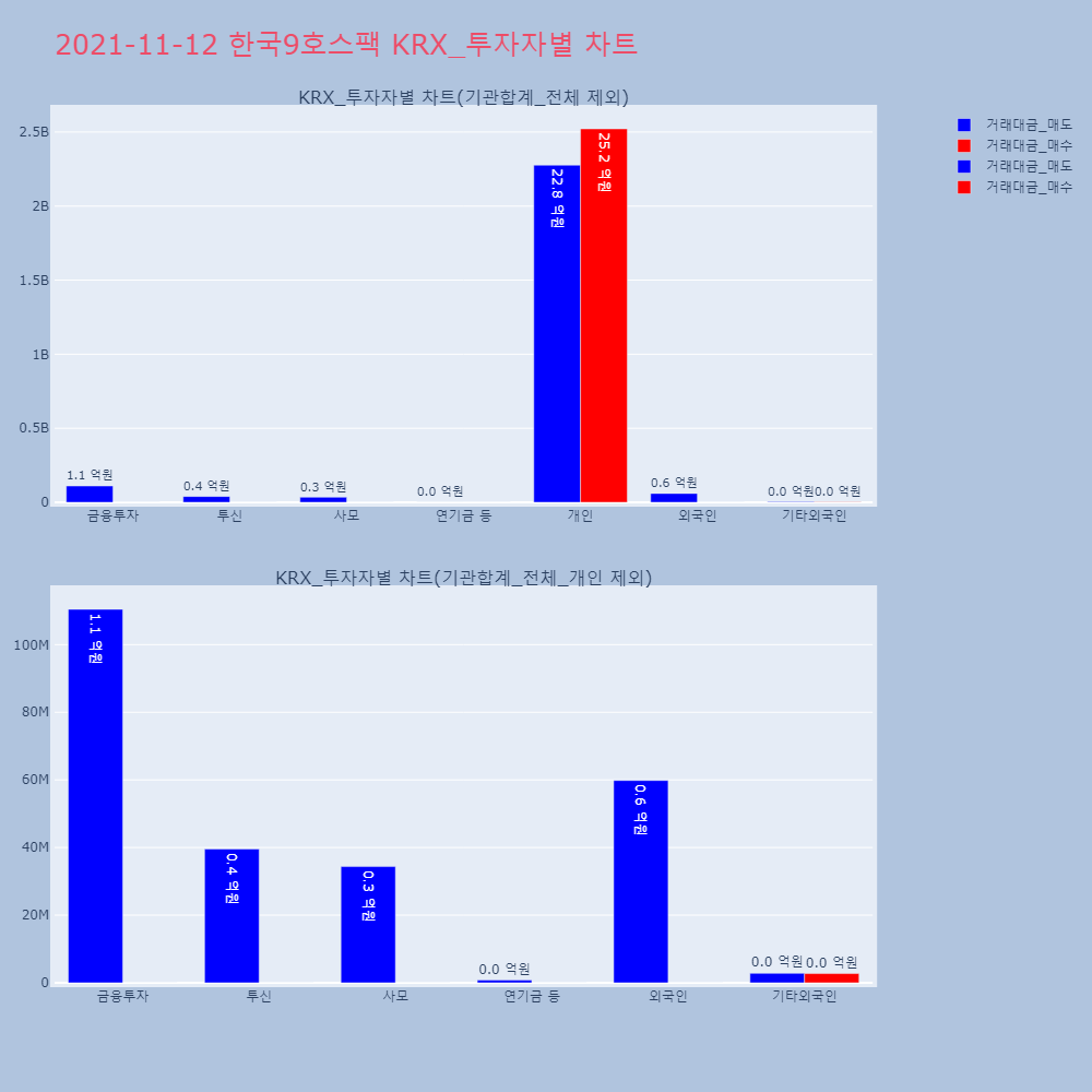 | 투자기관 | 거래량_매도 | 거래량_매수 | 거래량_순매수 | 거래대금_매도 | 거래대금_매수 | 거래대금_순매수 |