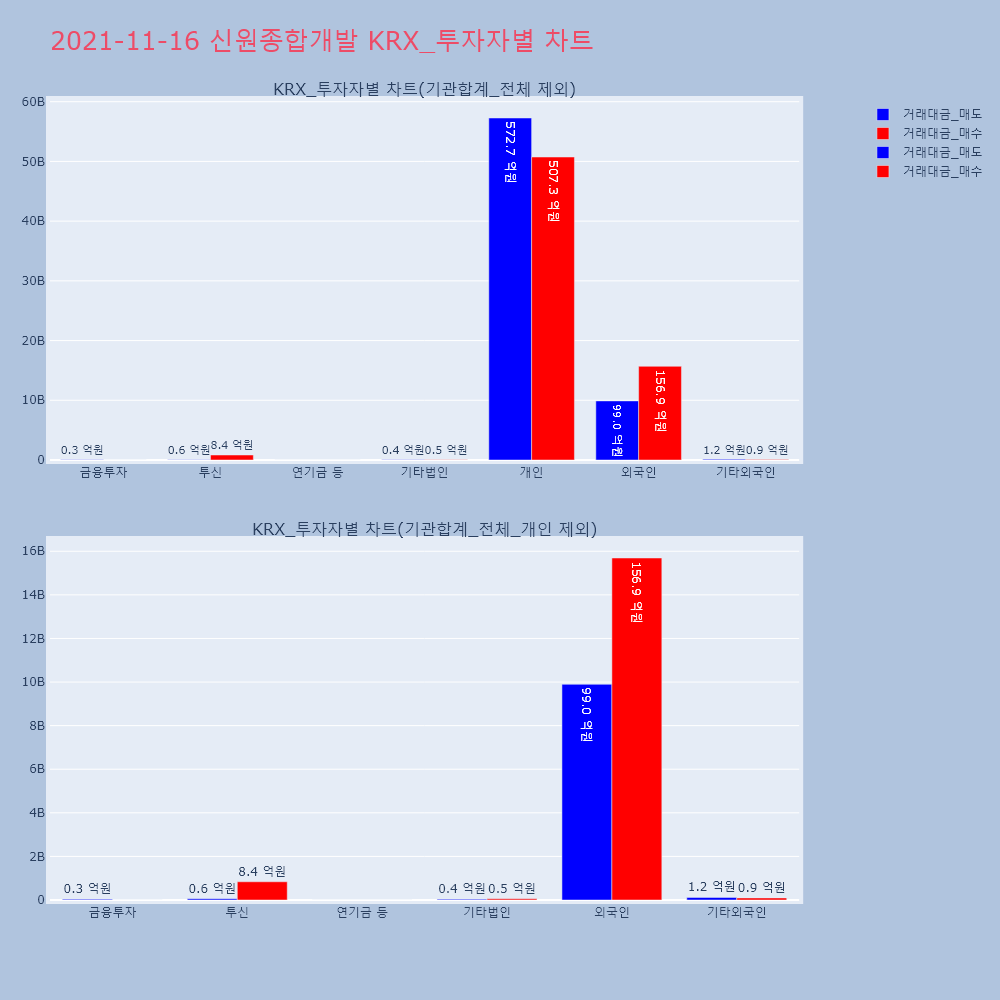 | 투자기관 | 거래량_매도 | 거래량_매수 | 거래량_순매수 | 거래대금_매도 | 거래대금_매수 | 거래대금_순매수 |