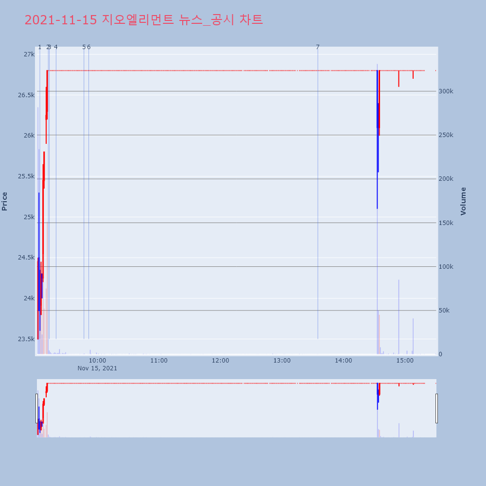 | 5 | 상장 첫날 급락 지오엘리먼트, 2거래일 연속 상한가[머니투데이 강민수 기자] [특징주]상장 첫날 급락했던 | 머니투데이 | 지오엘리먼트 | 2021-11-15 09:46:53 |