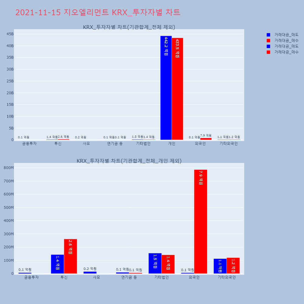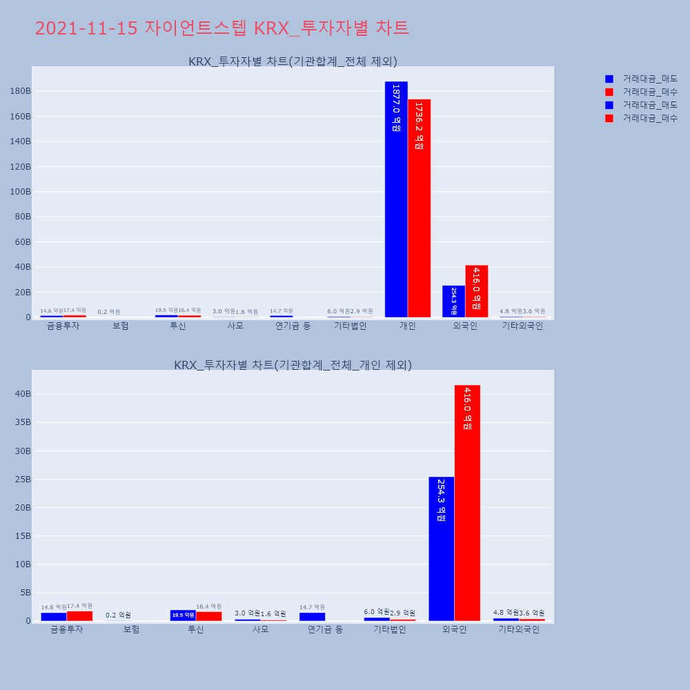 | 투자기관 | 거래량_매도 | 거래량_매수 | 거래량_순매수 | 거래대금_매도 | 거래대금_매수 | 거래대금_순매수 |