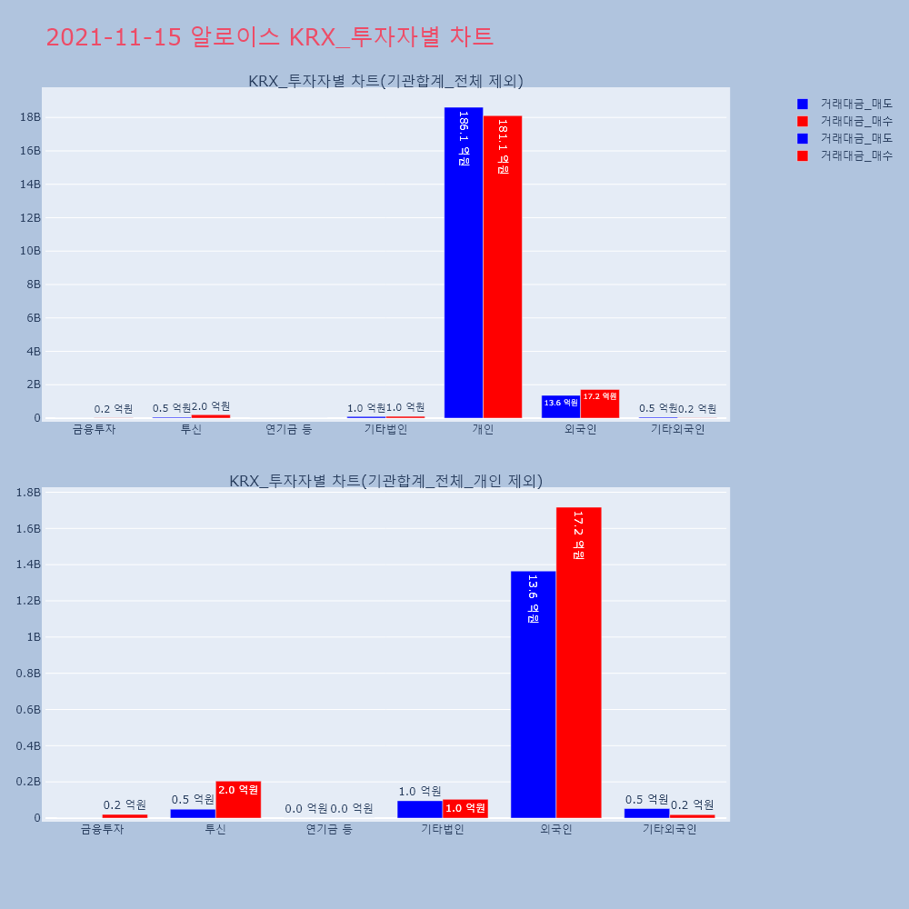 | 투자기관 | 거래량_매도 | 거래량_매수 | 거래량_순매수 | 거래대금_매도 | 거래대금_매수 | 거래대금_순매수 |