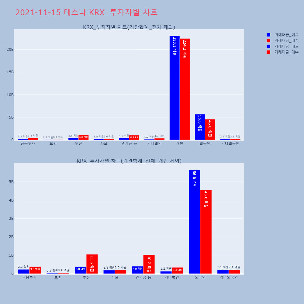 | 투자기관 | 거래량_매도 | 거래량_매수 | 거래량_순매수 | 거래대금_매도 | 거래대금_매수 | 거래대금_순매수 |