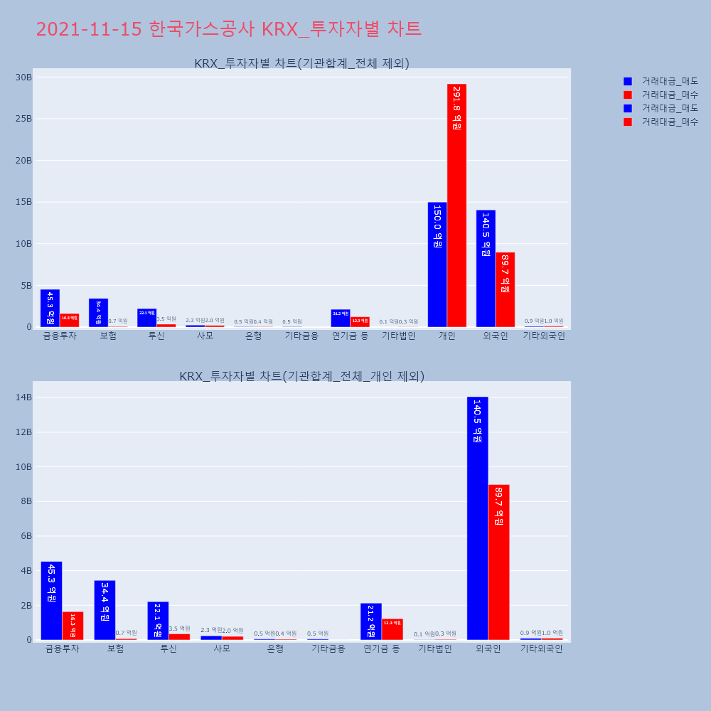 | 투자기관 | 거래량_매도 | 거래량_매수 | 거래량_순매수 | 거래대금_매도 | 거래대금_매수 | 거래대금_순매수 |