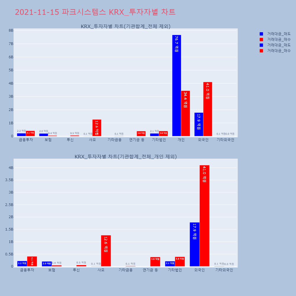 | 투자기관 | 거래량_매도 | 거래량_매수 | 거래량_순매수 | 거래대금_매도 | 거래대금_매수 | 거래대금_순매수 |