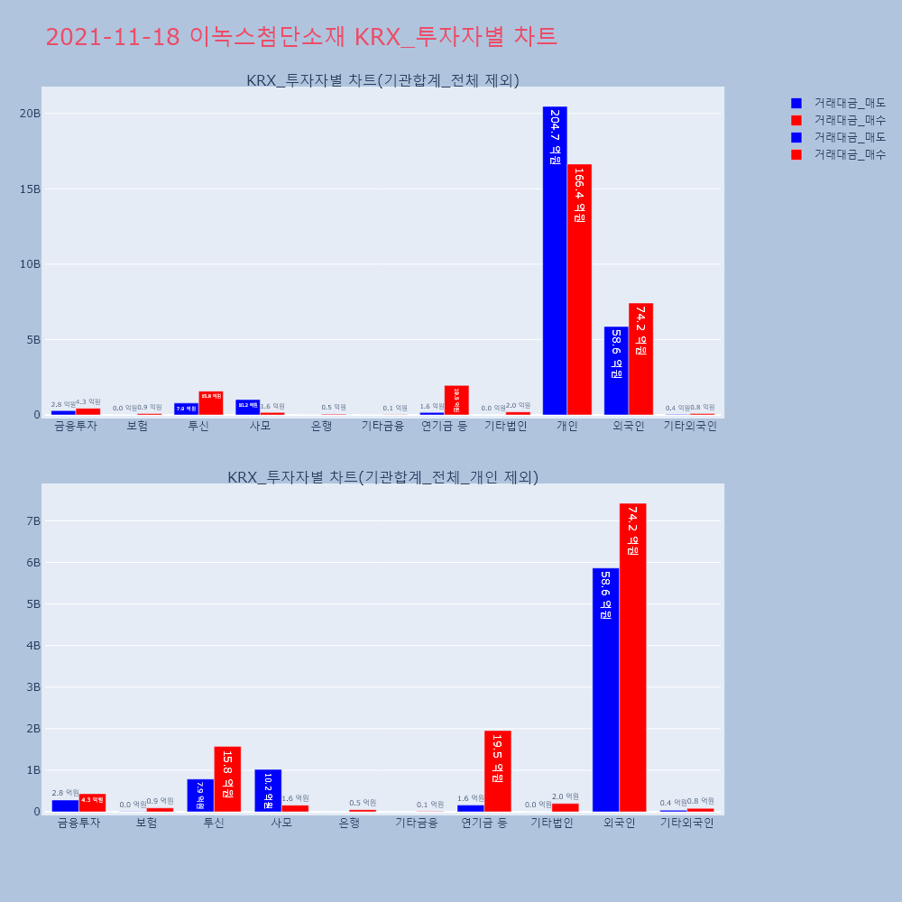 | 투자기관 | 거래량_매도 | 거래량_매수 | 거래량_순매수 | 거래대금_매도 | 거래대금_매수 | 거래대금_순매수 |