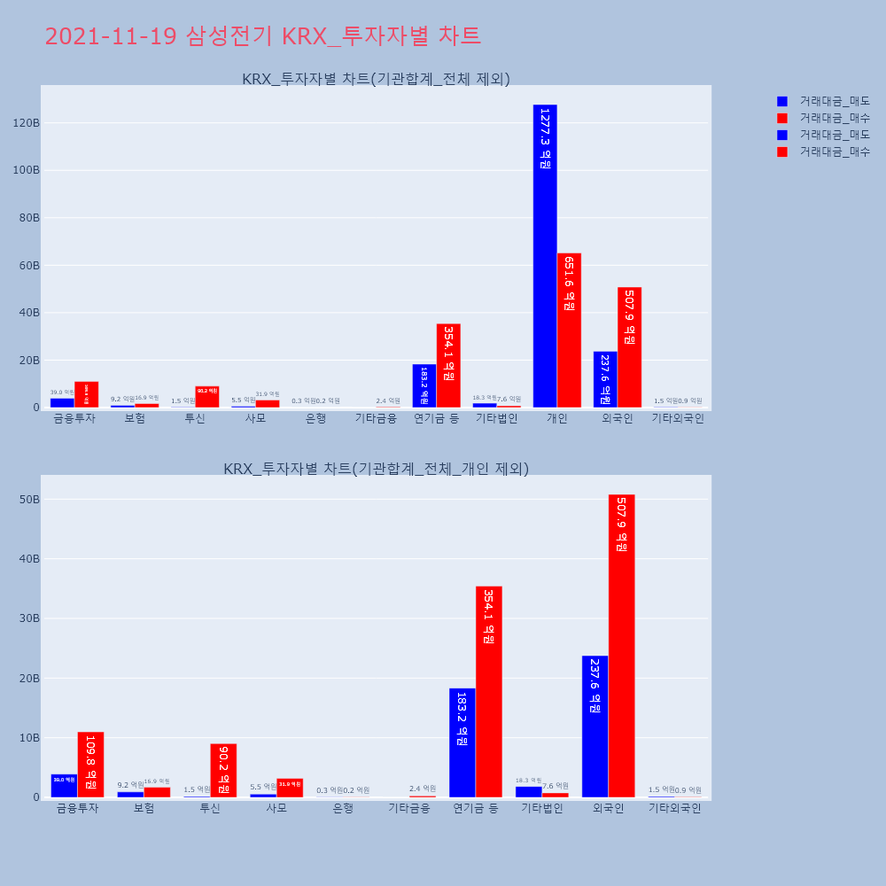 | 투자기관 | 거래량_매도 | 거래량_매수 | 거래량_순매수 | 거래대금_매도 | 거래대금_매수 | 거래대금_순매수 |