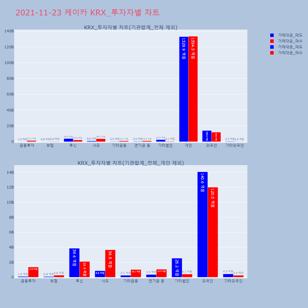| 투자기관 | 거래량_매도 | 거래량_매수 | 거래량_순매수 | 거래대금_매도 | 거래대금_매수 | 거래대금_순매수 |