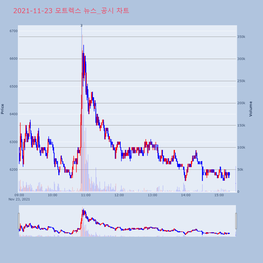 | 2 | 모트렉스, +2.71% 상승폭 확대모트렉스(118990)가 상승폭을 확대하고 있다. 전일 | 조선경제 | 모트렉스 | 2021-11-23 10:52:23 |