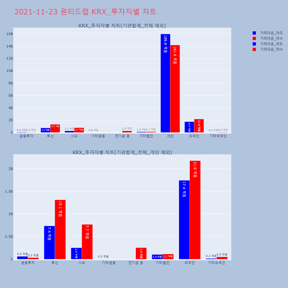 | 투자기관 | 거래량_매도 | 거래량_매수 | 거래량_순매수 | 거래대금_매도 | 거래대금_매수 | 거래대금_순매수 |