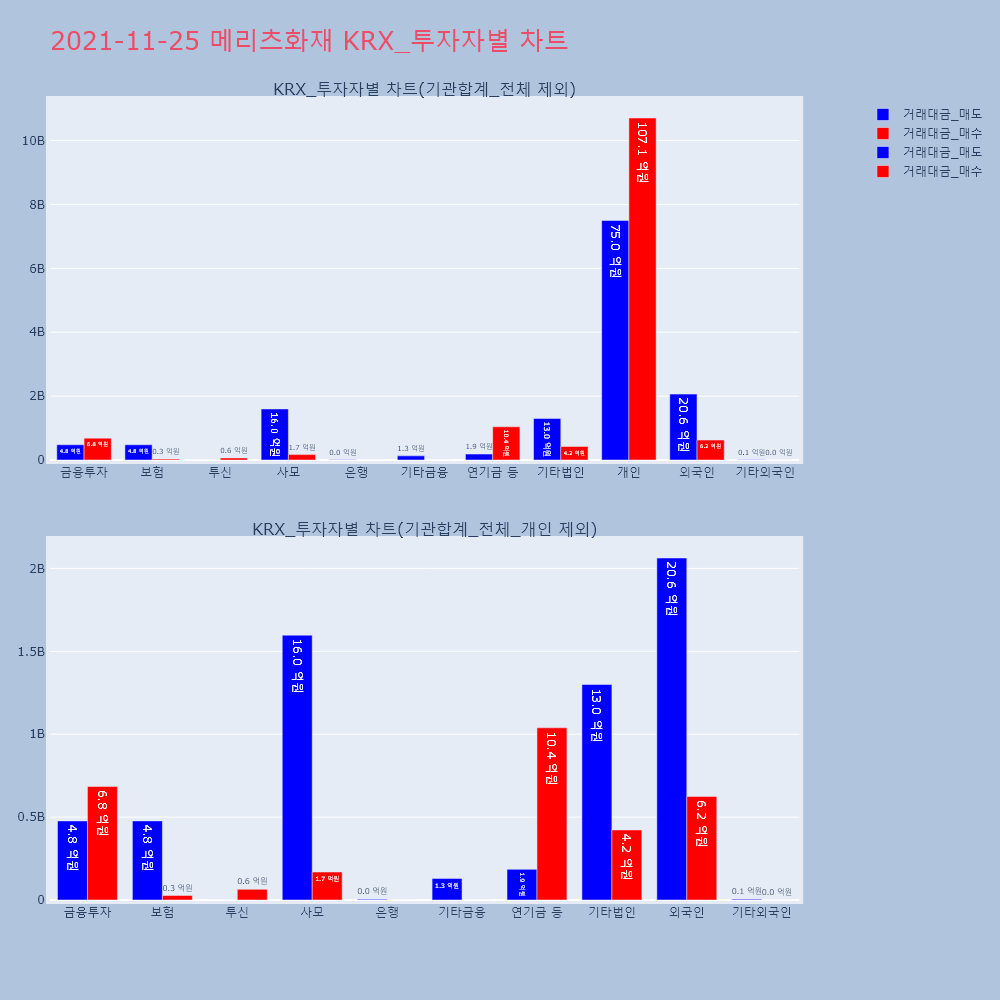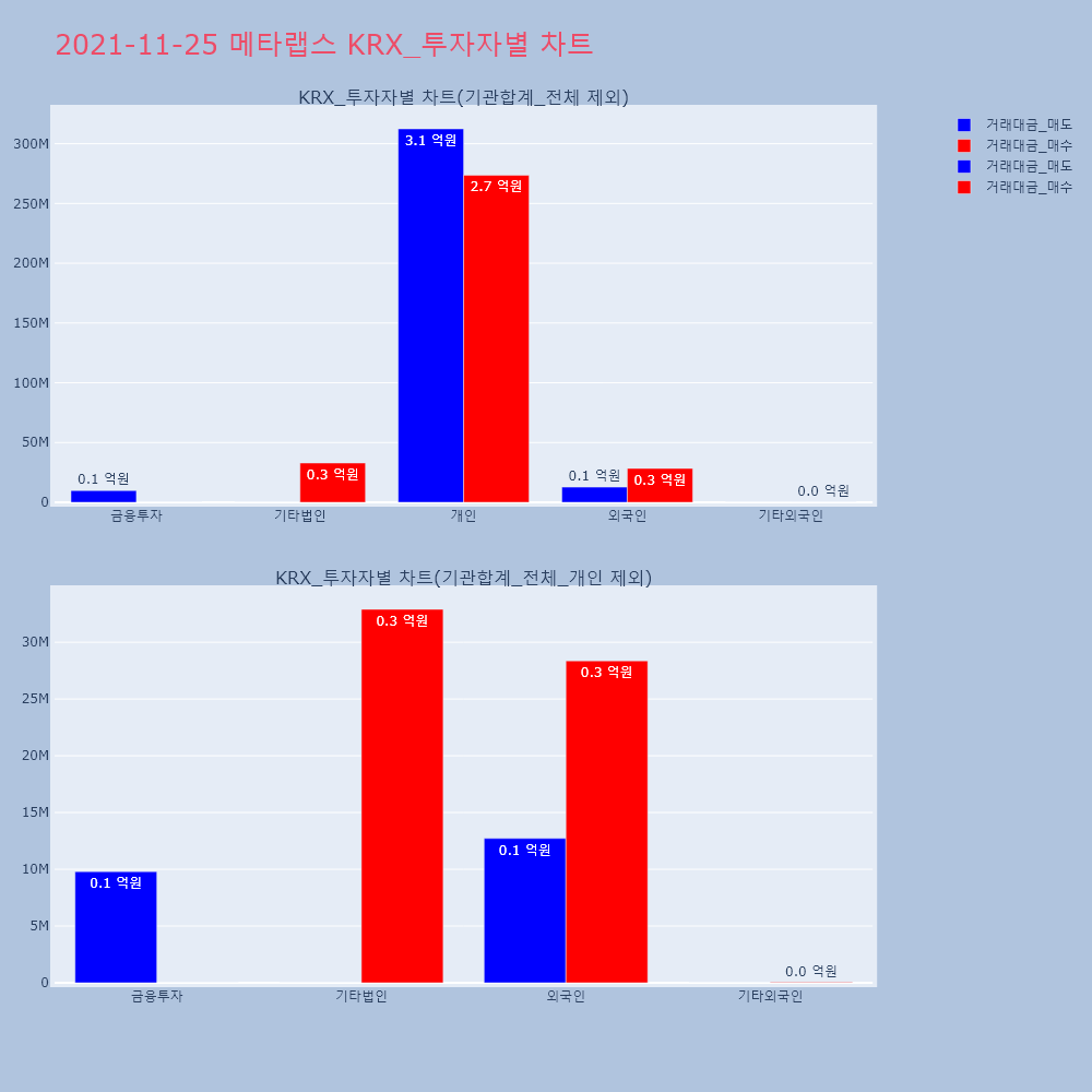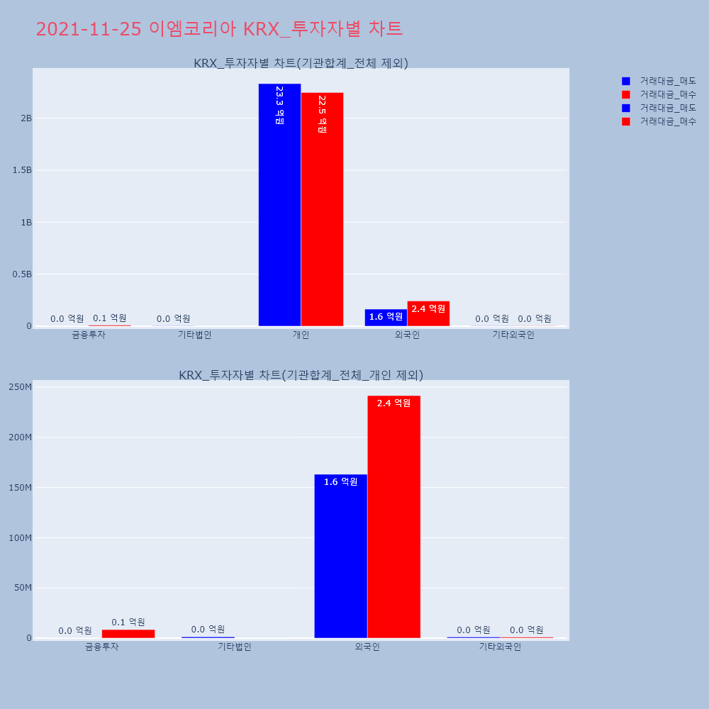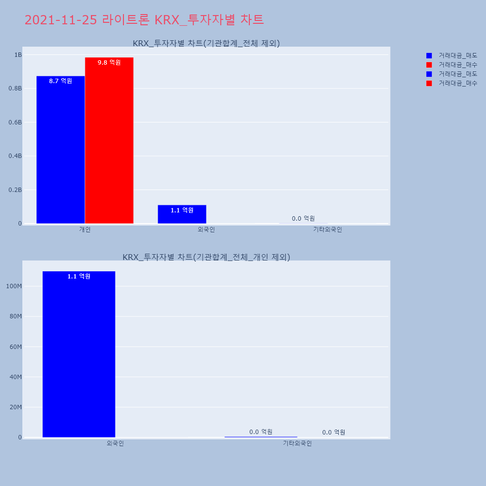 | 투자기관 | 거래량_매도 | 거래량_매수 | 거래량_순매수 | 거래대금_매도 | 거래대금_매수 | 거래대금_순매수 |