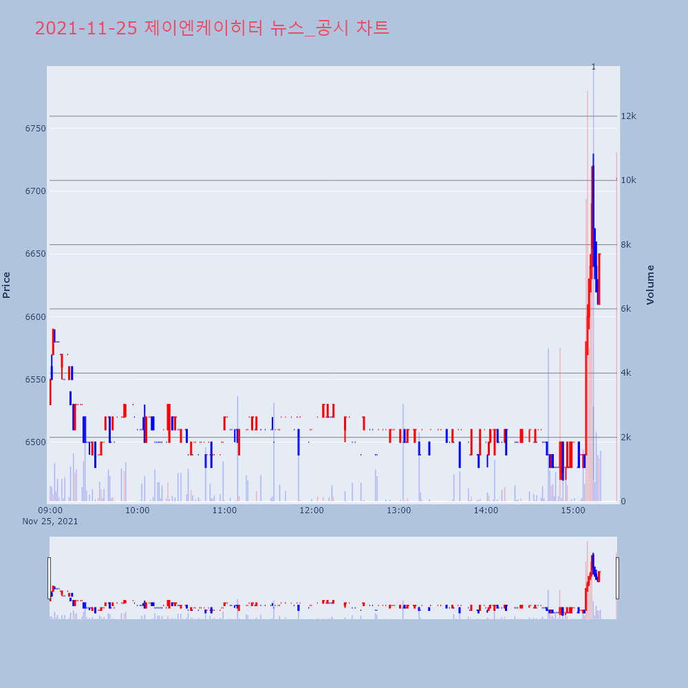 | 1 | [핫클릭]시간외 급등주 분석 - 비투엔(307870), 대호에이엘(069460)※ 본 글은 투자 참고용으로, 한국경제신문의 의견과 | 한경/증권 | 주성엔지니어링 | 2021-11-24 08:05:15 |