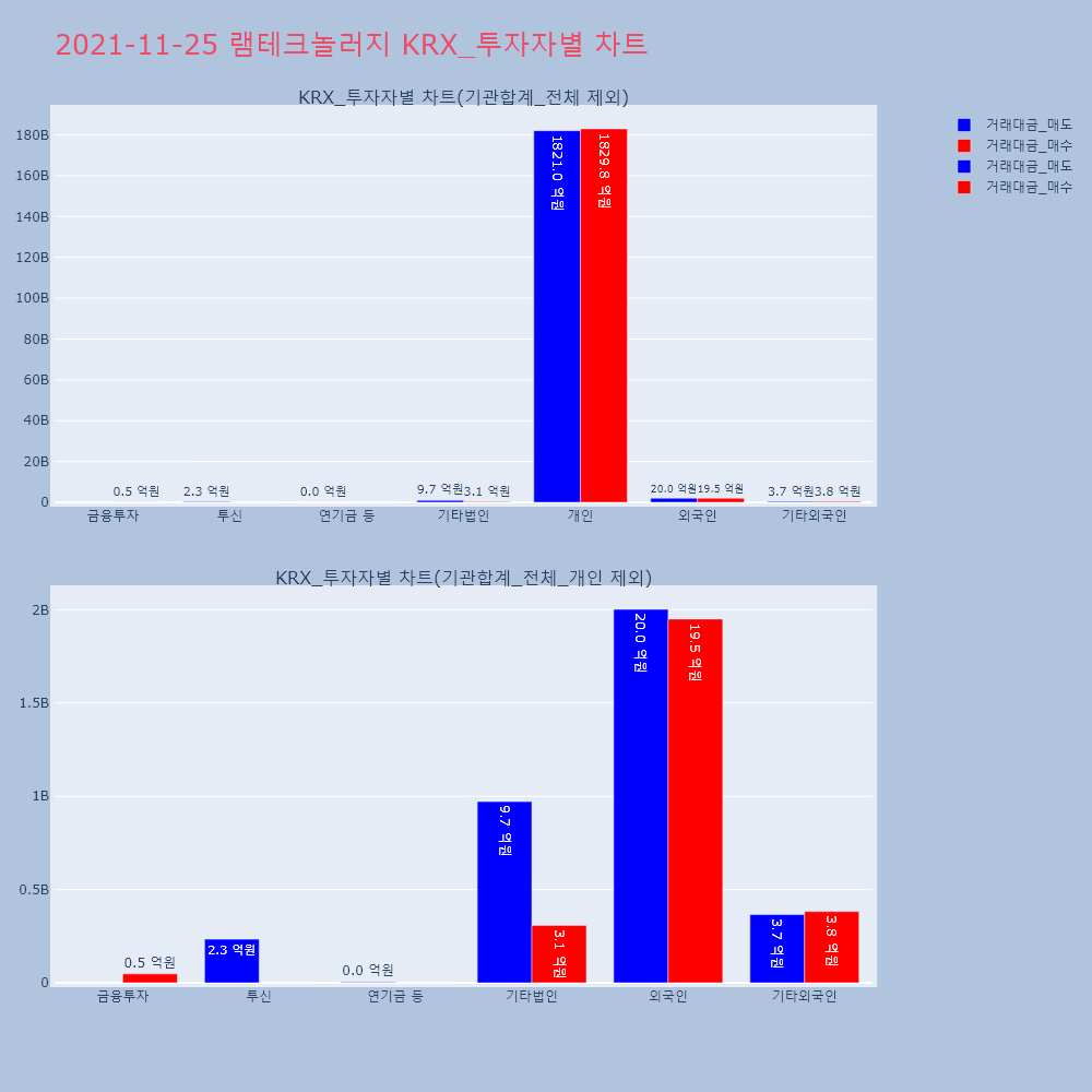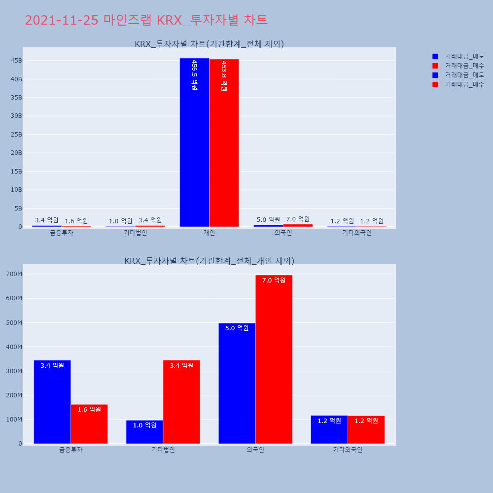| 투자기관 | 거래량_매도 | 거래량_매수 | 거래량_순매수 | 거래대금_매도 | 거래대금_매수 | 거래대금_순매수 |