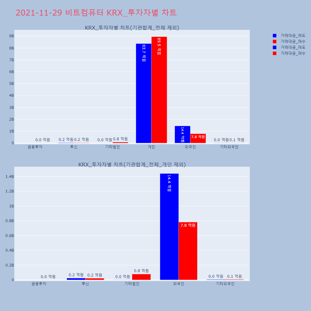 | 투자기관 | 거래량_매도 | 거래량_매수 | 거래량_순매수 | 거래대금_매도 | 거래대금_매수 | 거래대금_순매수 |