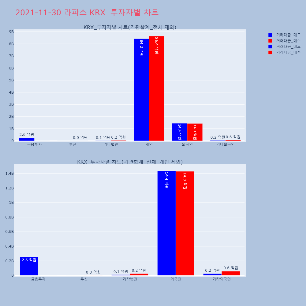 | 투자기관 | 거래량_매도 | 거래량_매수 | 거래량_순매수 | 거래대금_매도 | 거래대금_매수 | 거래대금_순매수 |