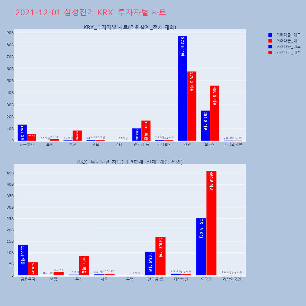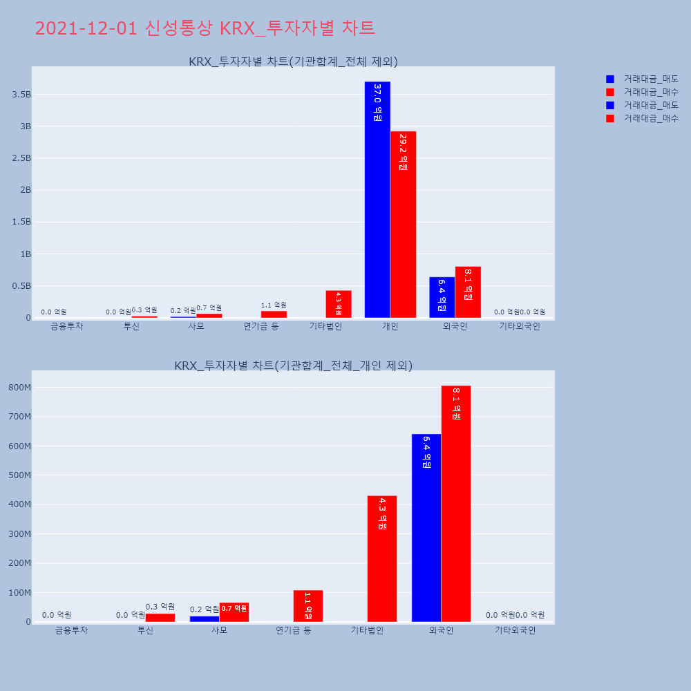 | 투자기관 | 거래량_매도 | 거래량_매수 | 거래량_순매수 | 거래대금_매도 | 거래대금_매수 | 거래대금_순매수 |