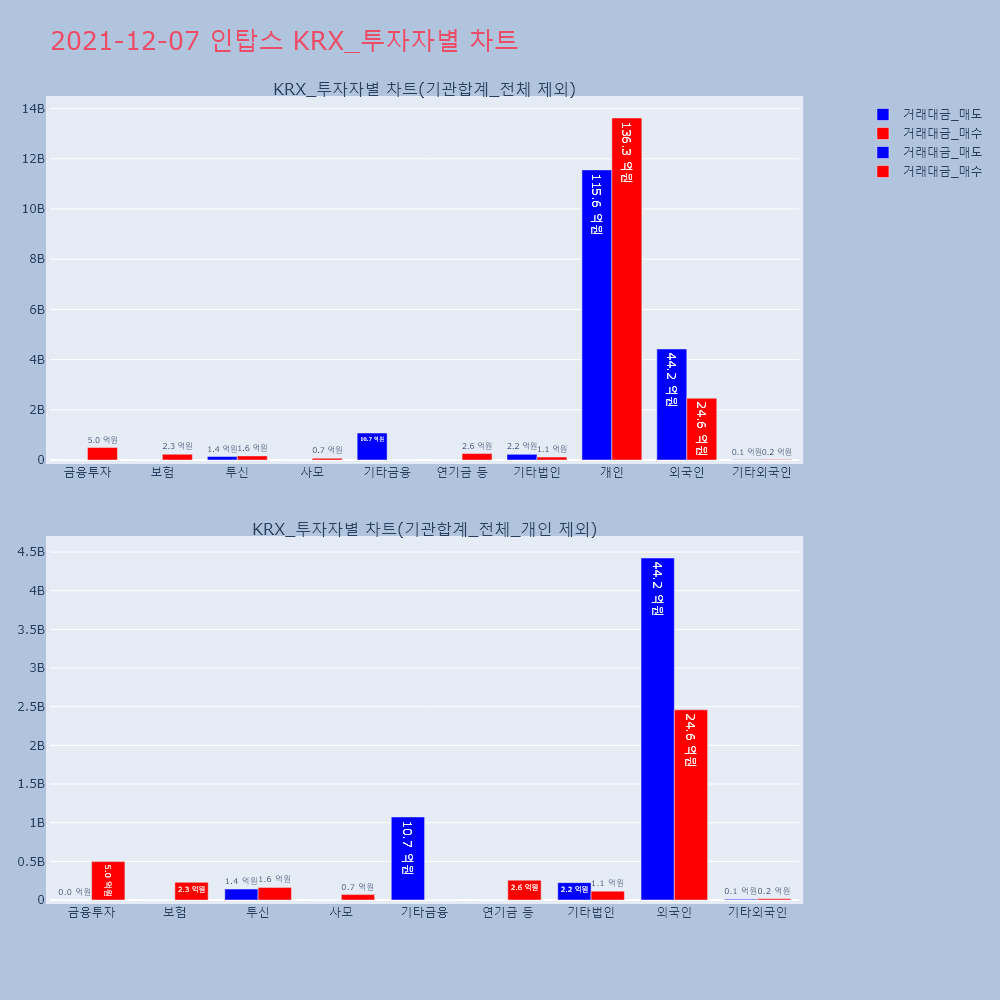 | 투자기관 | 거래량_매도 | 거래량_매수 | 거래량_순매수 | 거래대금_매도 | 거래대금_매수 | 거래대금_순매수 |