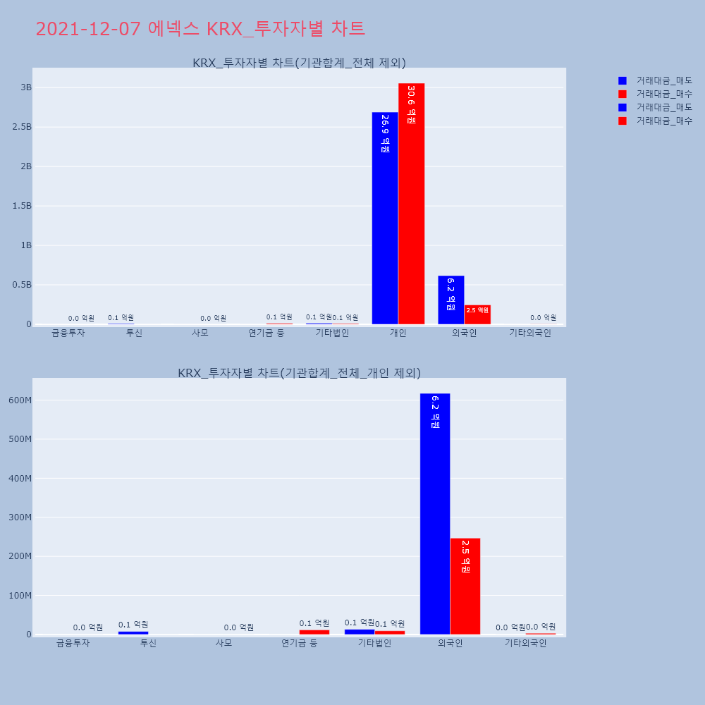 | 투자기관 | 거래량_매도 | 거래량_매수 | 거래량_순매수 | 거래대금_매도 | 거래대금_매수 | 거래대금_순매수 |