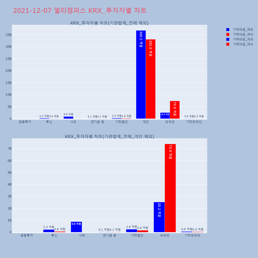 | 투자기관 | 거래량_매도 | 거래량_매수 | 거래량_순매수 | 거래대금_매도 | 거래대금_매수 | 거래대금_순매수 |