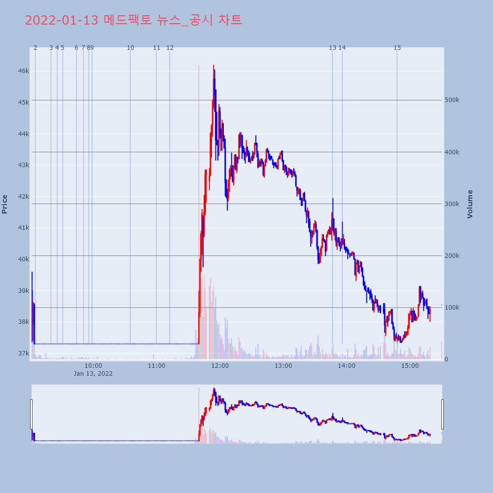 | 2 | [이시각 하한가] 메드팩토(▼15900) - 13일 오전 9시4분[이투데이/e2BOT 기자(e2bot@etoday.co | 이투데이 | 메드팩토 | 2022-01-13 09:05:04 |