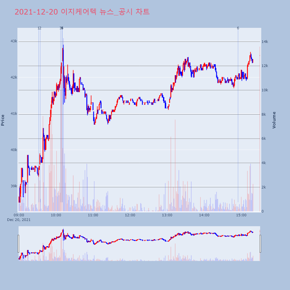 | 3 | [강세 토픽] 원격의료 테마, 이지케어텍 +8.82%, 유비케어 +7.66%[원격의료] 테마가 강세다. 전일 대비 2.26% 상승 | 조선경제 | 이지케어텍 | 2021-12-20 10:07:30 |