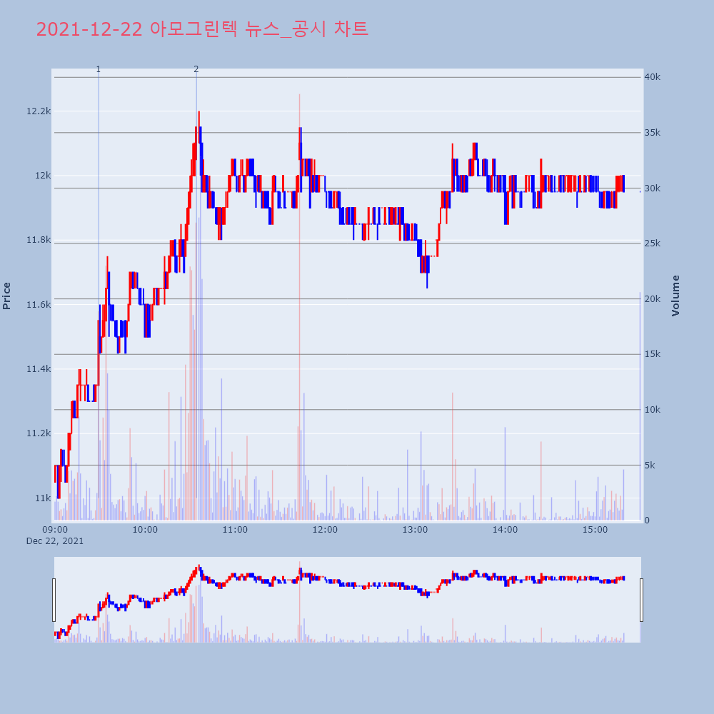 | 2 | 아모그린텍, +10.96% VI 발동아모그린텍(125210)이 VI가 발동했다. 전일 대비 | 조선경제 | 아모그린텍 | 2021-12-22 10:34:18 |