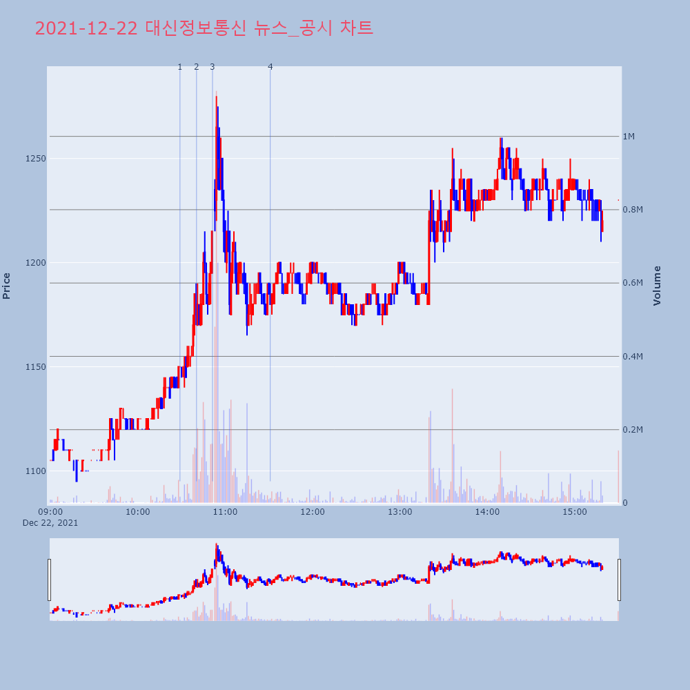 | 4 | [장중수급포착] 대신정보통신, 외국인 27.61만 주 대량 순매수... 주가 +7.[서울=뉴스핌] 로보뉴스 = 22일 11시 30분 현재 | 뉴스핌 | 대신정보통신 | 2021-12-22 11:30:58 |