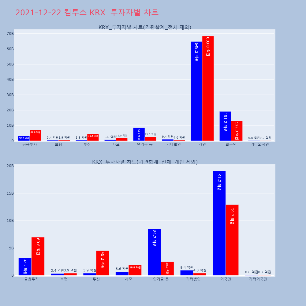 | 투자기관 | 거래량_매도 | 거래량_매수 | 거래량_순매수 | 거래대금_매도 | 거래대금_매수 | 거래대금_순매수 |