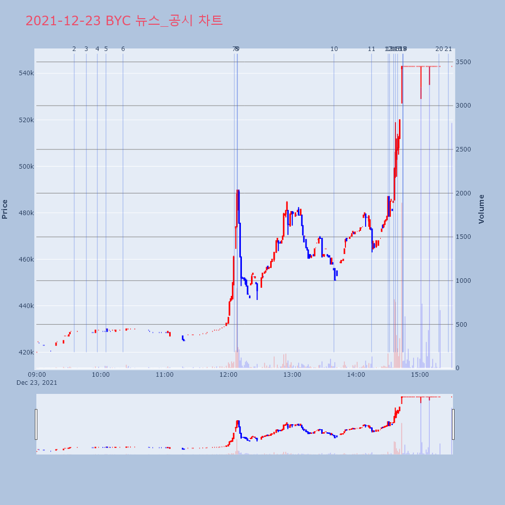 | 23 | [fnRASSI]장마감, 거래소 상승 종목(BYC 29.9% ↑) 23일 코스피는 전일 대비 13.69p 상승한 2,99 | 파이낸셜 | BYC | 2021-12-23 15:42:12 |