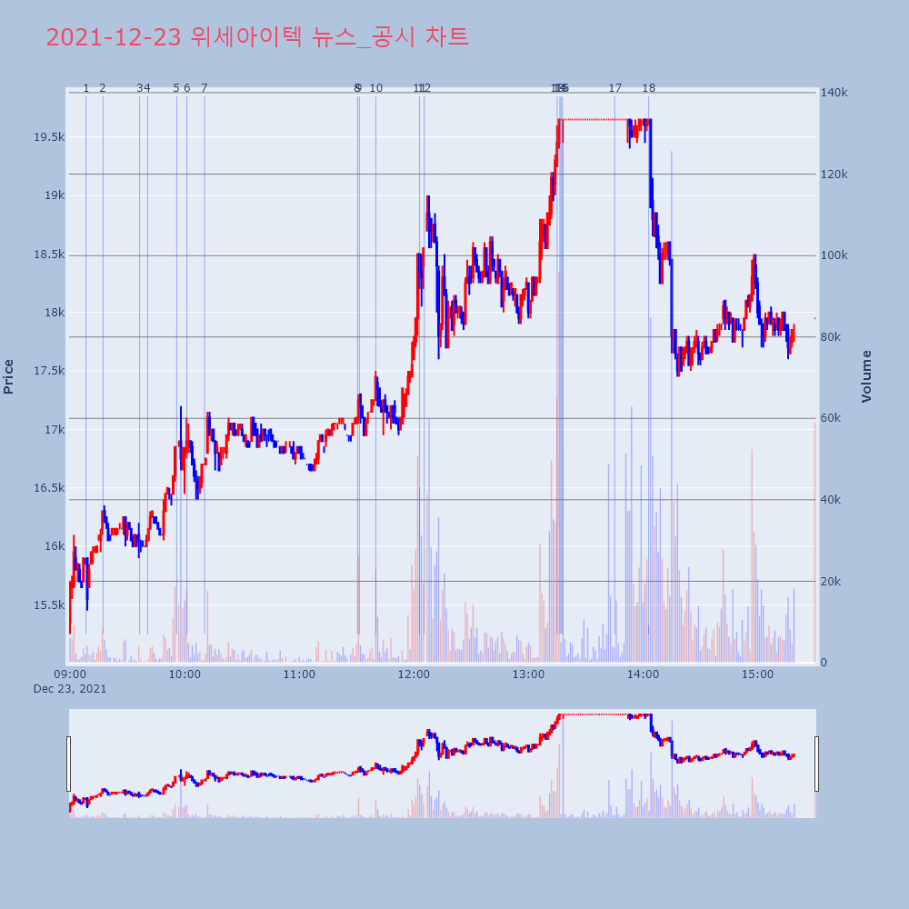 | 17 | [급등주] 위세아이텍,상한가..거래량 폭증하며 52주 최고가[급등주] 위세아이텍,상한가..거래량 폭증하며52주 최 | 아이투자 | 위세아이텍 | 2021-12-23 13:45:10 |