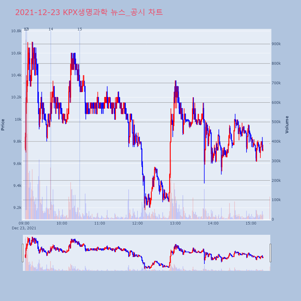 | 2 | KPX생명과학, +10.04% VI 발동KPX생명과학(114450)이 VI가 발동했다. 전일 | 조선경제 | KPX생명과학 | 2021-12-22 13:03:31 |