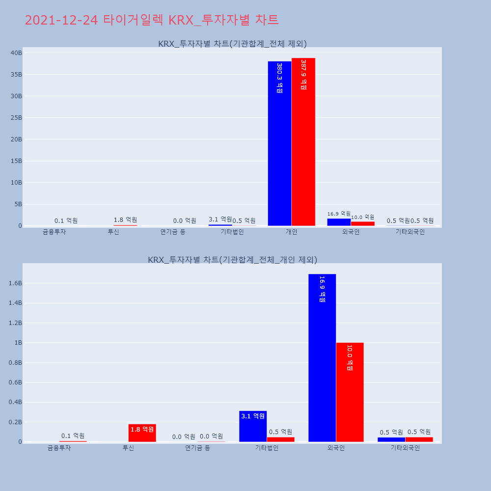 | 투자기관 | 거래량_매도 | 거래량_매수 | 거래량_순매수 | 거래대금_매도 | 거래대금_매수 | 거래대금_순매수 |