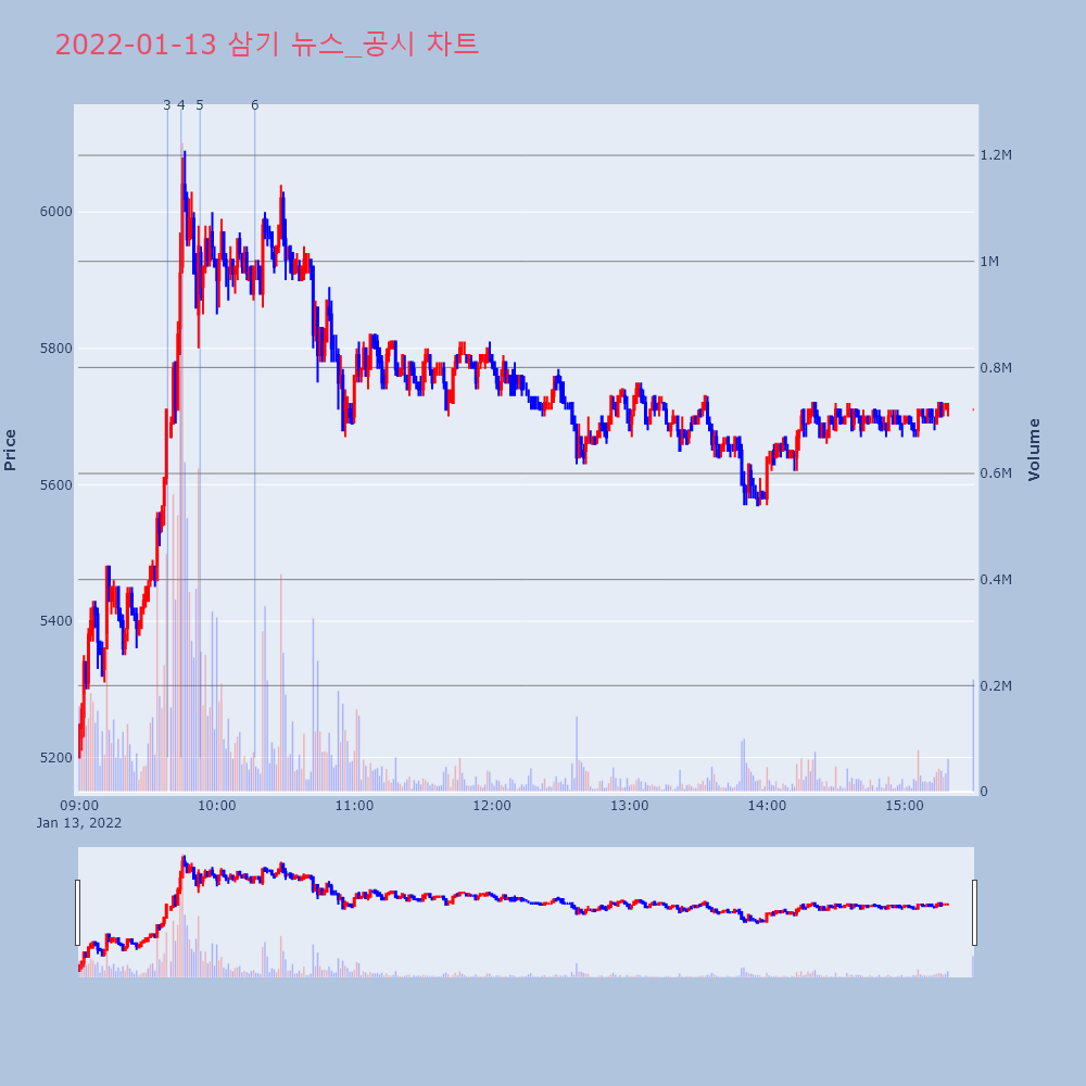 | 4 | [특징주] 삼기, LG에너지솔루션 역대급 수요예측 흥행… 전기차 앤드 플레제목 : [특징주] 삼기, LG에너지솔루션 역대급 수요 | 인포스탁 | 삼기 | 2022-01-13 09:44:24 |