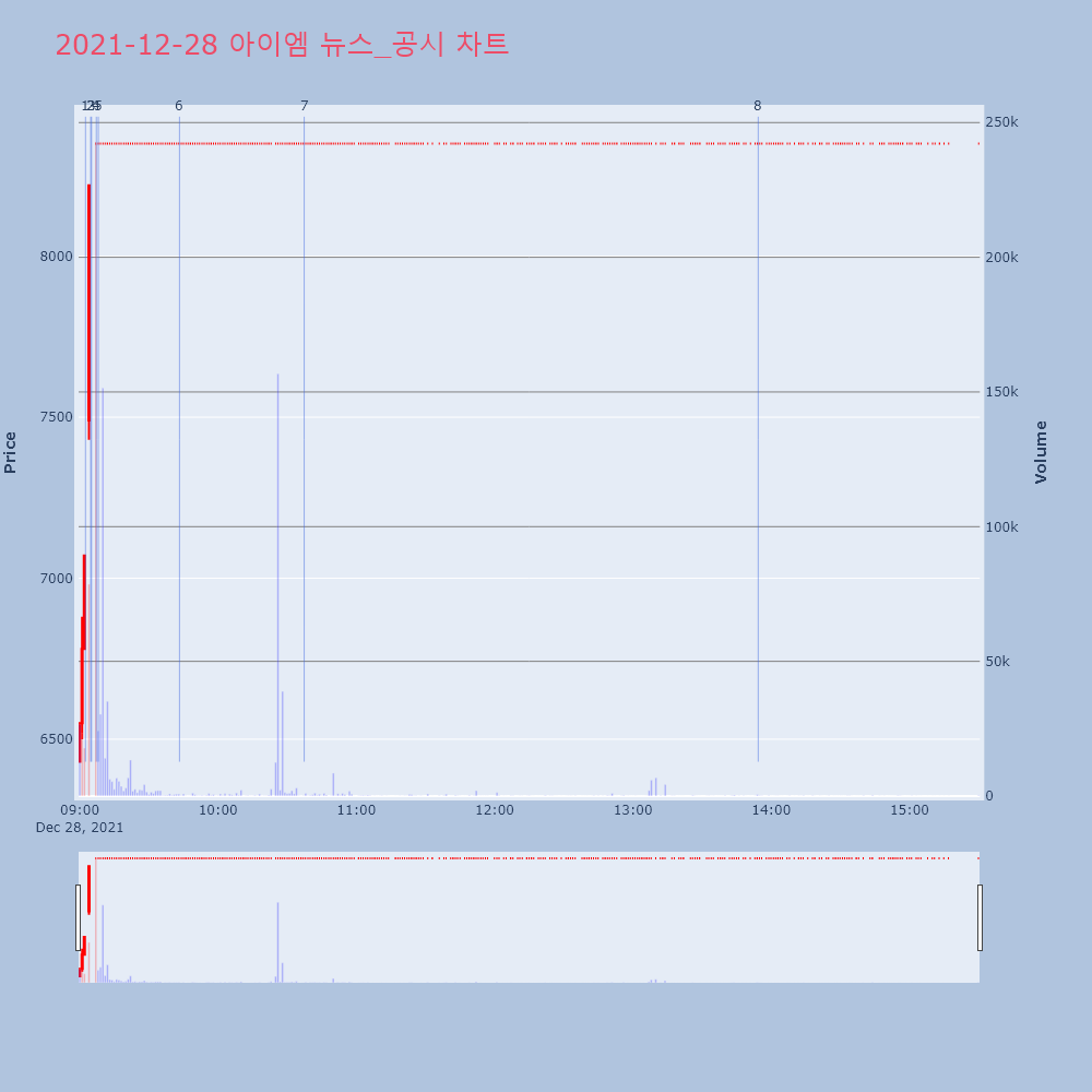 | 7 | [특징주]거래 재개 첫날 아이엠·디와이디 나란히 상한가[아시아경제 지연진 기자] 28일 주권매매거래가 재개 | 아시아경제 | 아이엠 | 2021-12-28 10:37:22 |